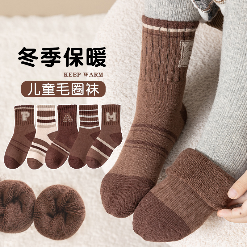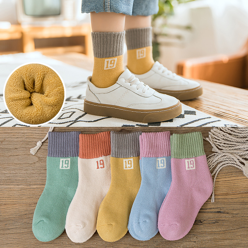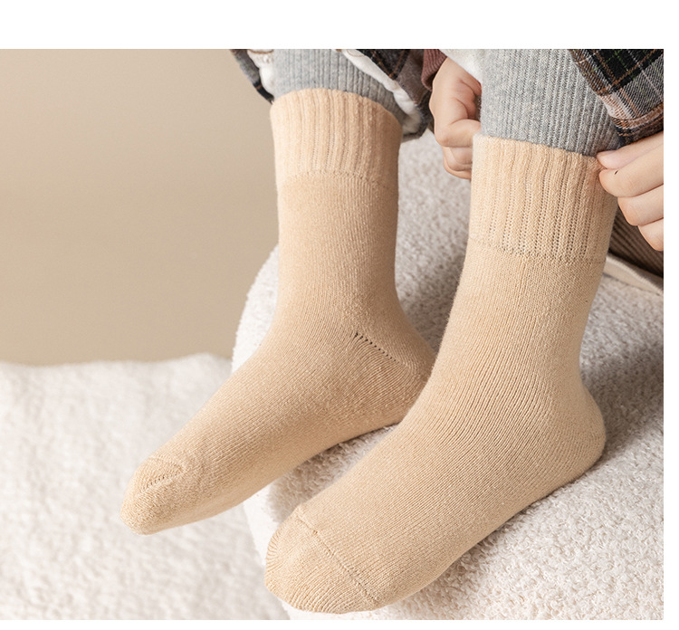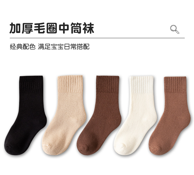 2023 어린이 양말 도매 겨울 두꺼운 따뜻한 수건 양말 단색 학생 두꺼운 양말 튜브 아기 양말스토어 가기