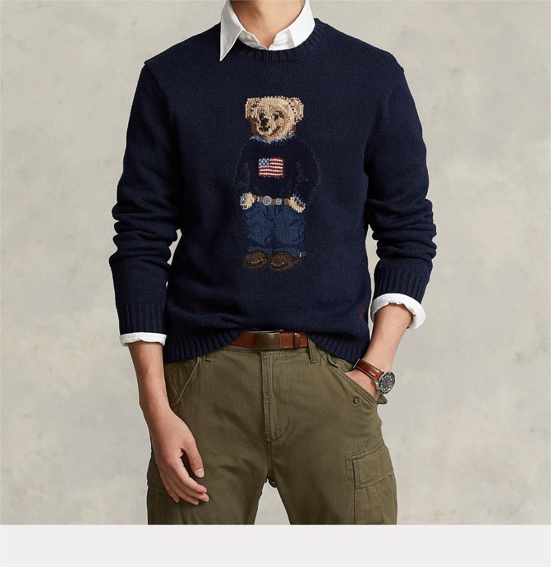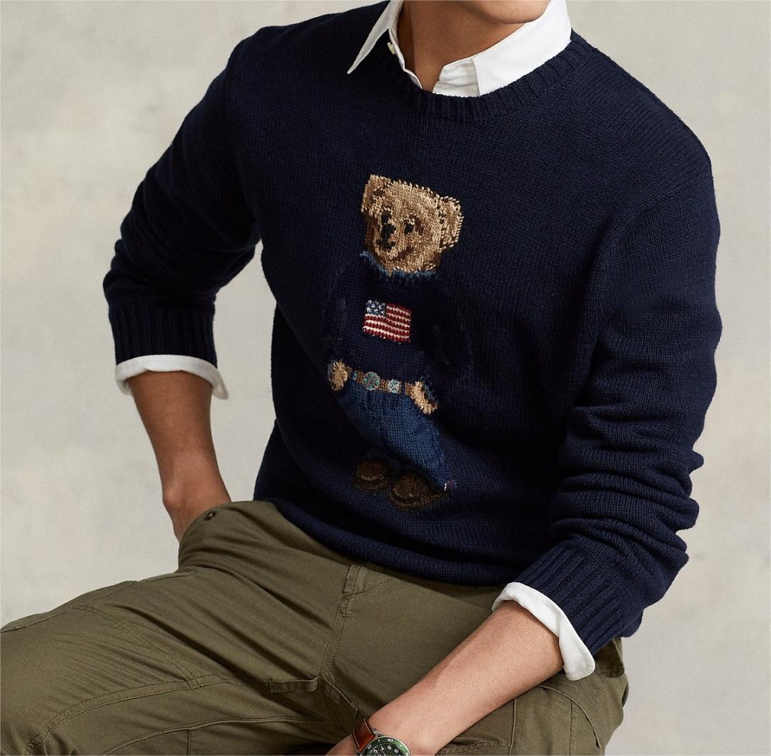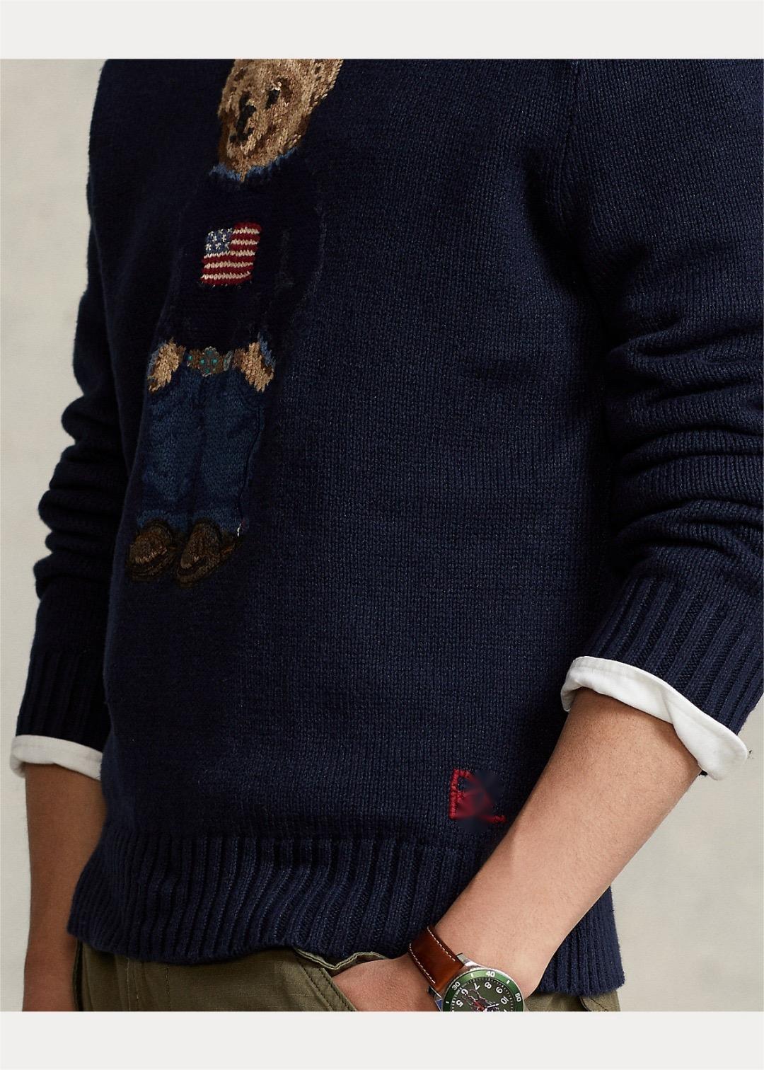 조랑말 ~ 가을과 겨울 새로운 클래식 자수 국기 곰 크루넥 캐주얼 통근 스타일 모든 매치 스웨터스토어 가기