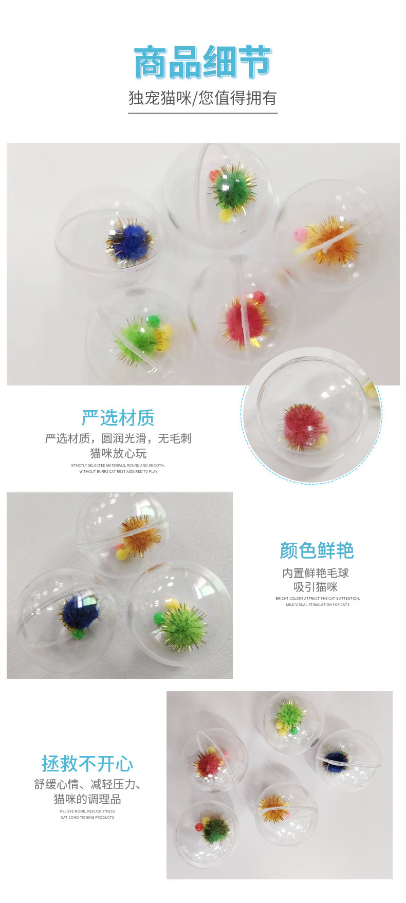4.3cm 크리스마스 고양이 장난감 공, 투명한 속이 빈 플라스틱 벨볼, 던지기 및 추격 놀이용, 지루함 해소 장난감스토어 가기