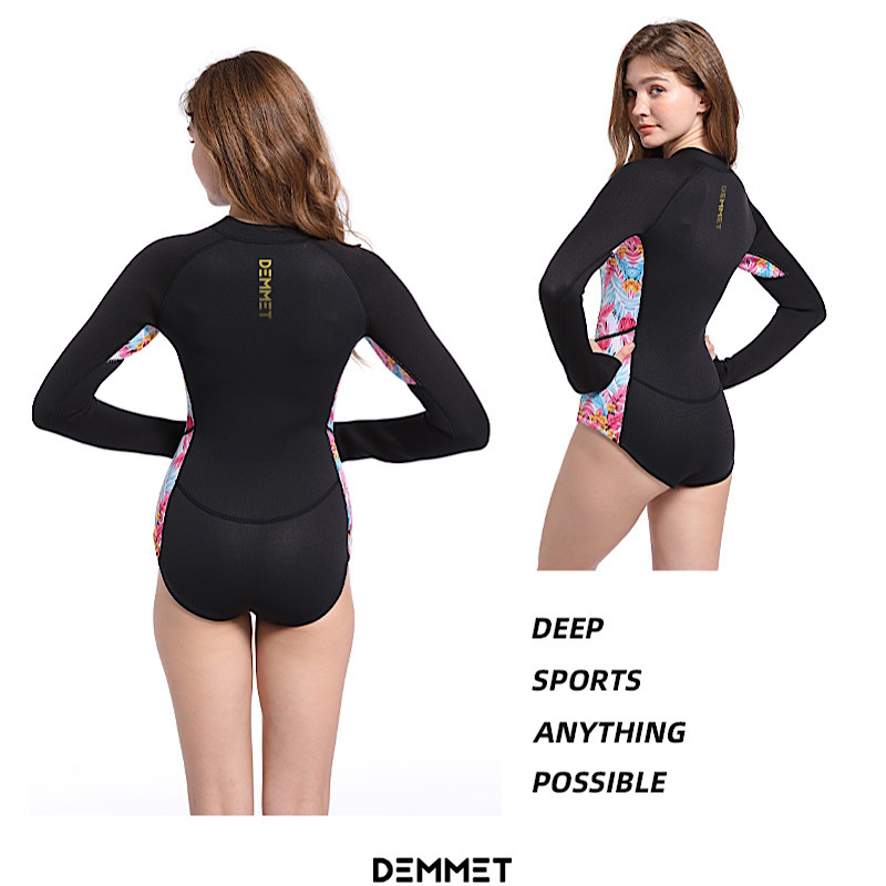 다이빙 세트 여자 1.5-3mm 한 몸 긴팔 수영 젖은 세트 선 스크린 따뜻한 슬림 비키니 서핑 다이빙 세트