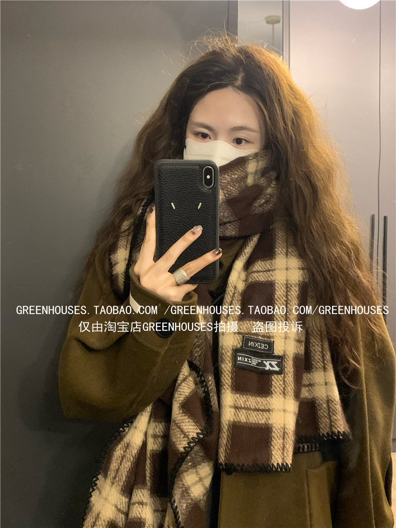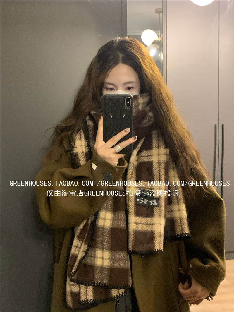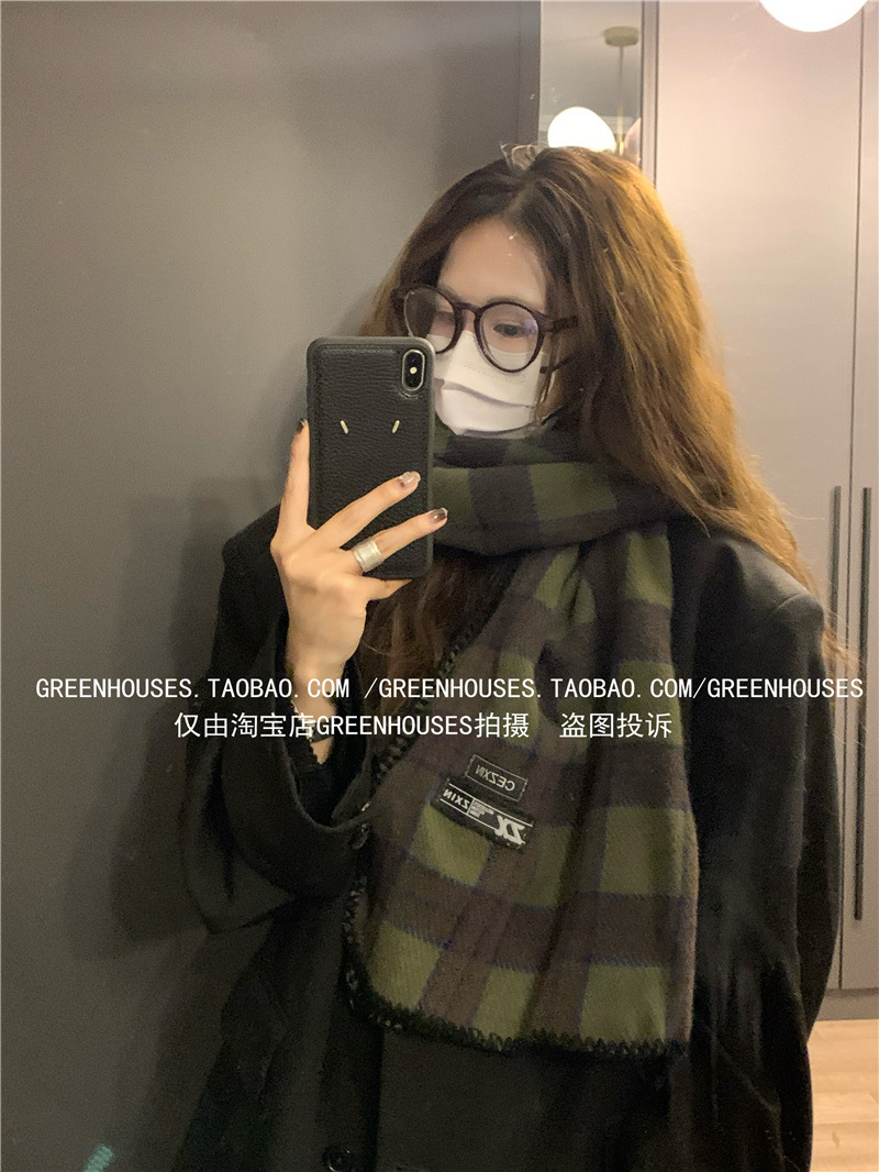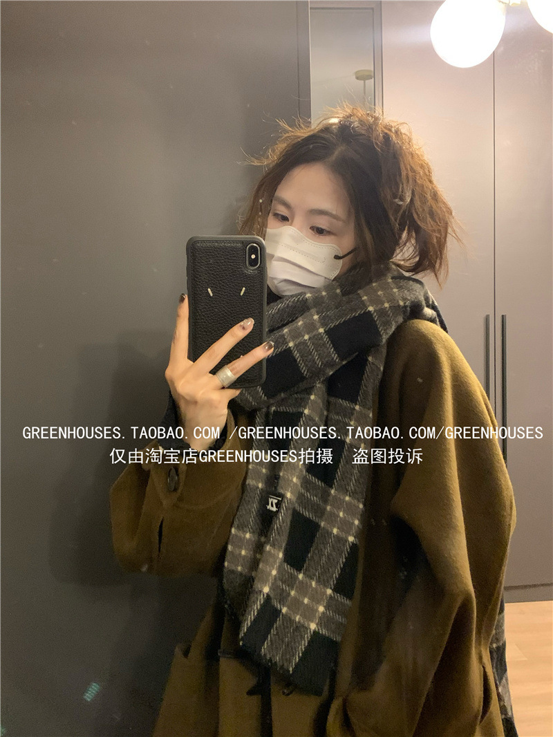 Greenhours 고급 스카프 여자의 겨울 한국 빈티지 격자 무늬 긴 숄 두꺼운 따뜻한 목스토어 가기