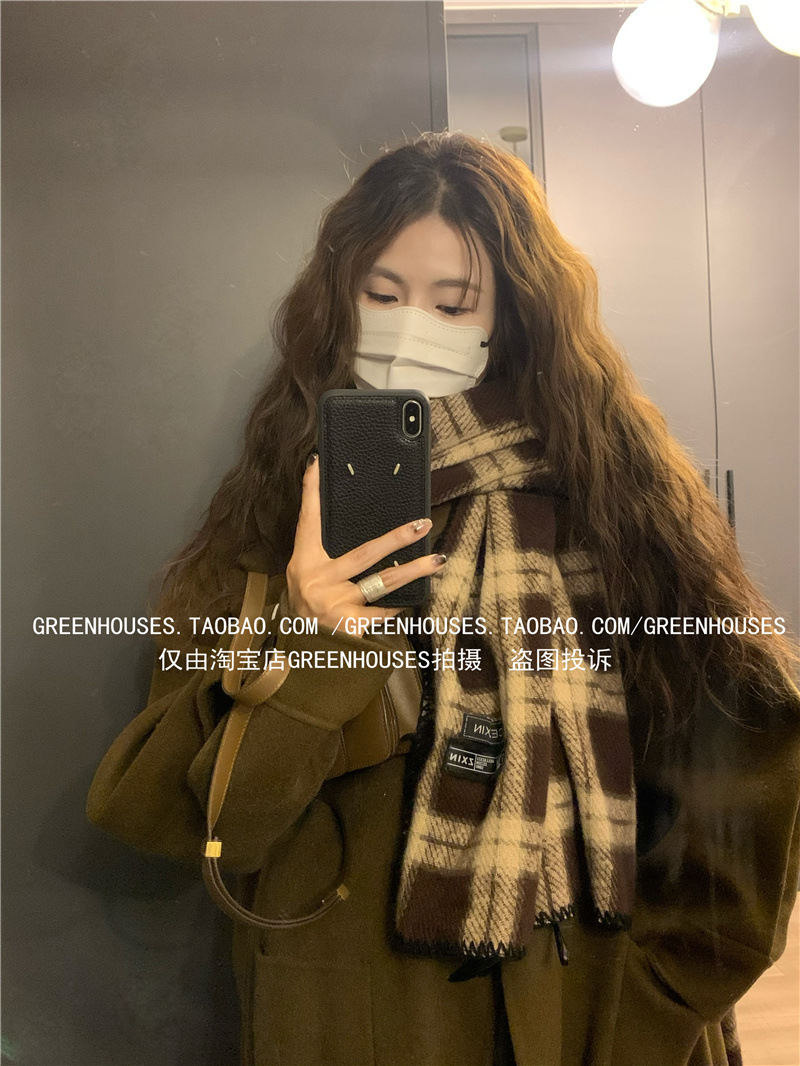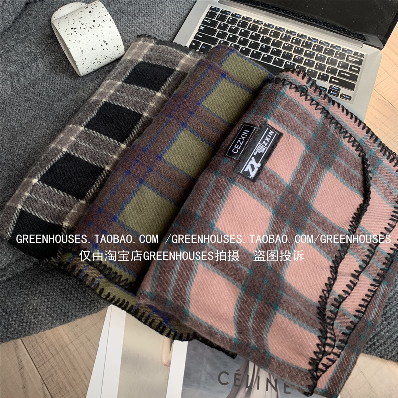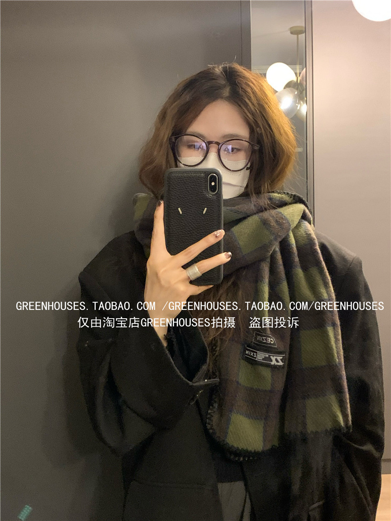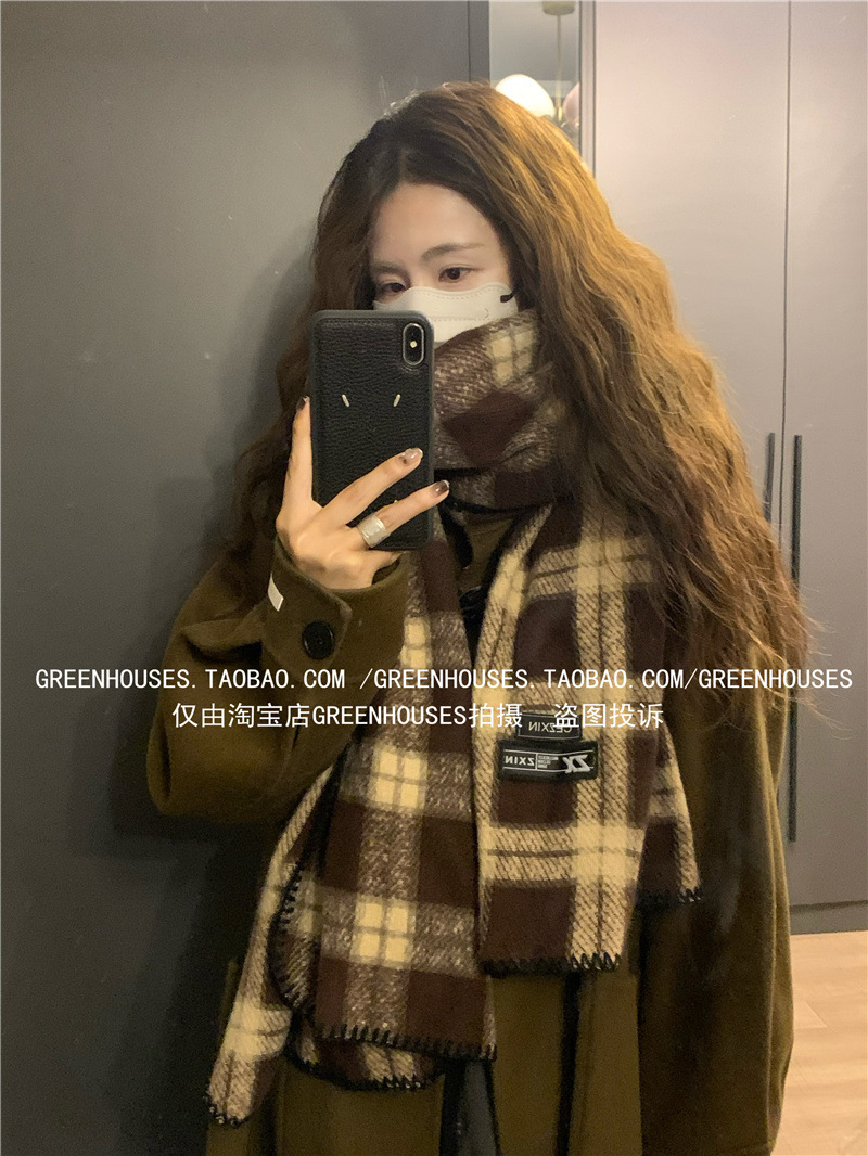 Greenhours 고급 스카프 여자의 겨울 한국 빈티지 격자 무늬 긴 숄 두꺼운 따뜻한 목스토어 가기