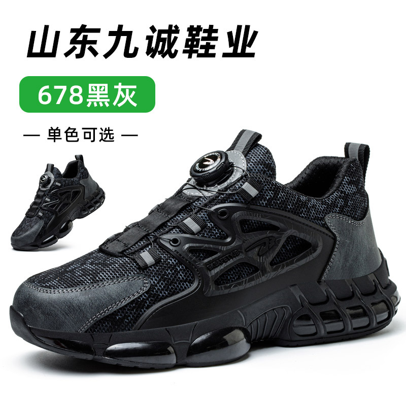 아마존의 새로운 남성용 회전 버튼 노동 보호 신발, 파손 방지 및 펑크 방지, 여름 플라이 짠 게으른 안전 건설 현장 신발