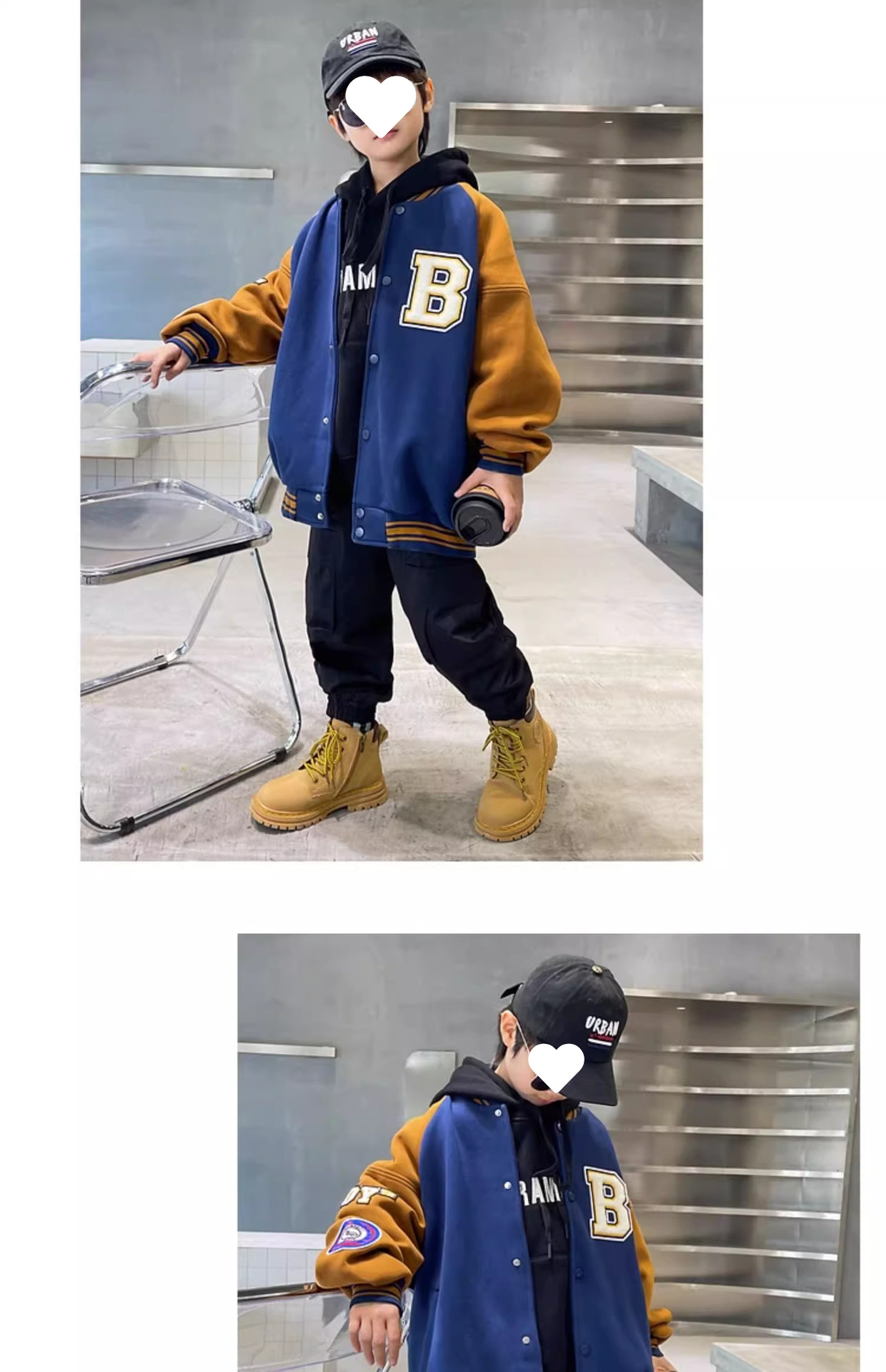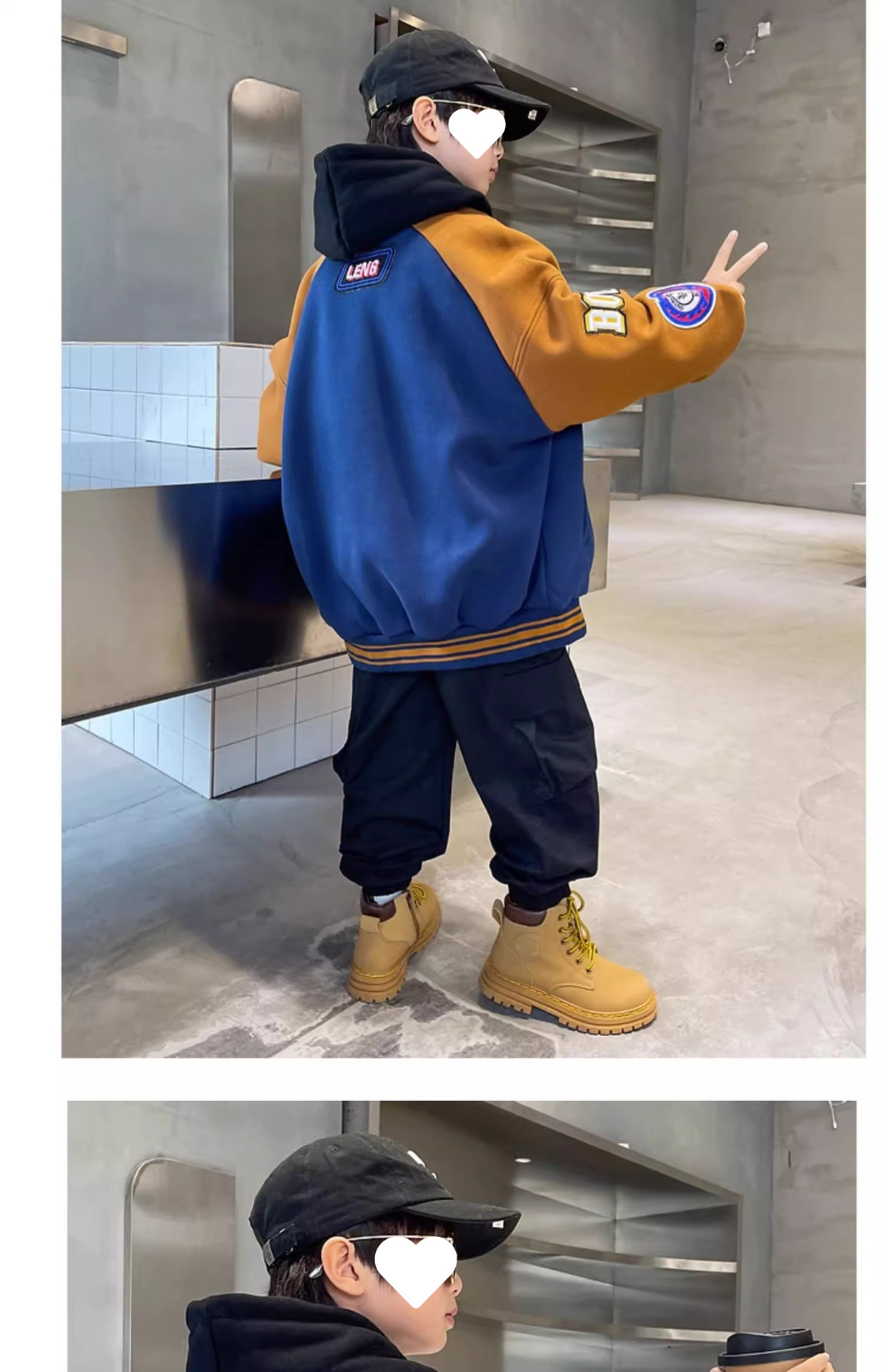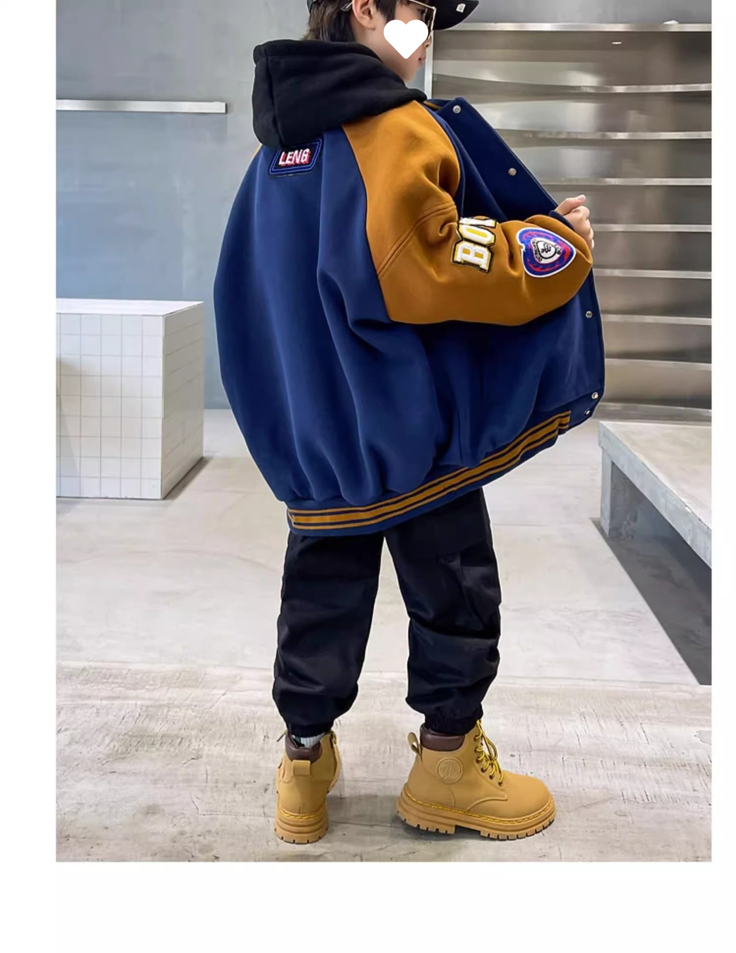 남아 겨울웨어 기모 재킷 2023 새로운 중형 어린이 컬러 블록 편지 자수 두꺼운 야구 세트 한국 가디건스토어 가기