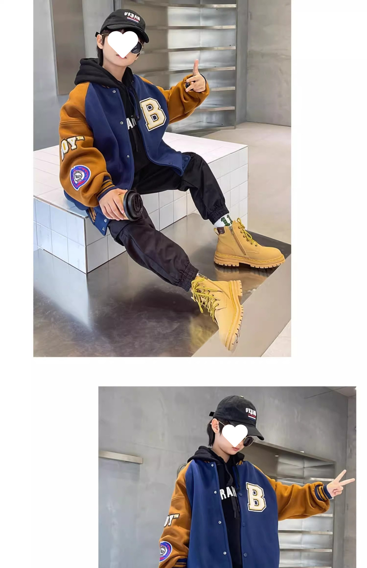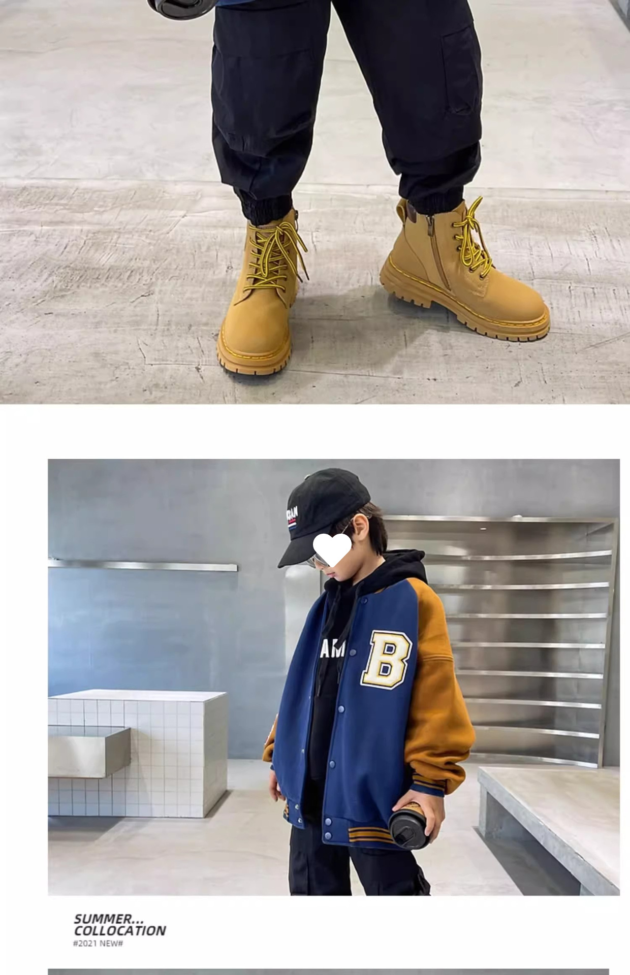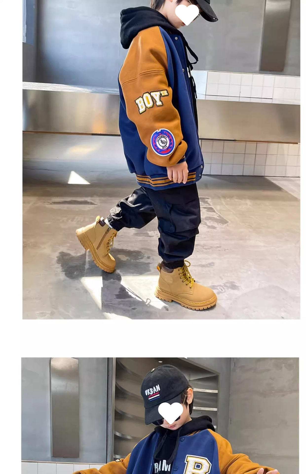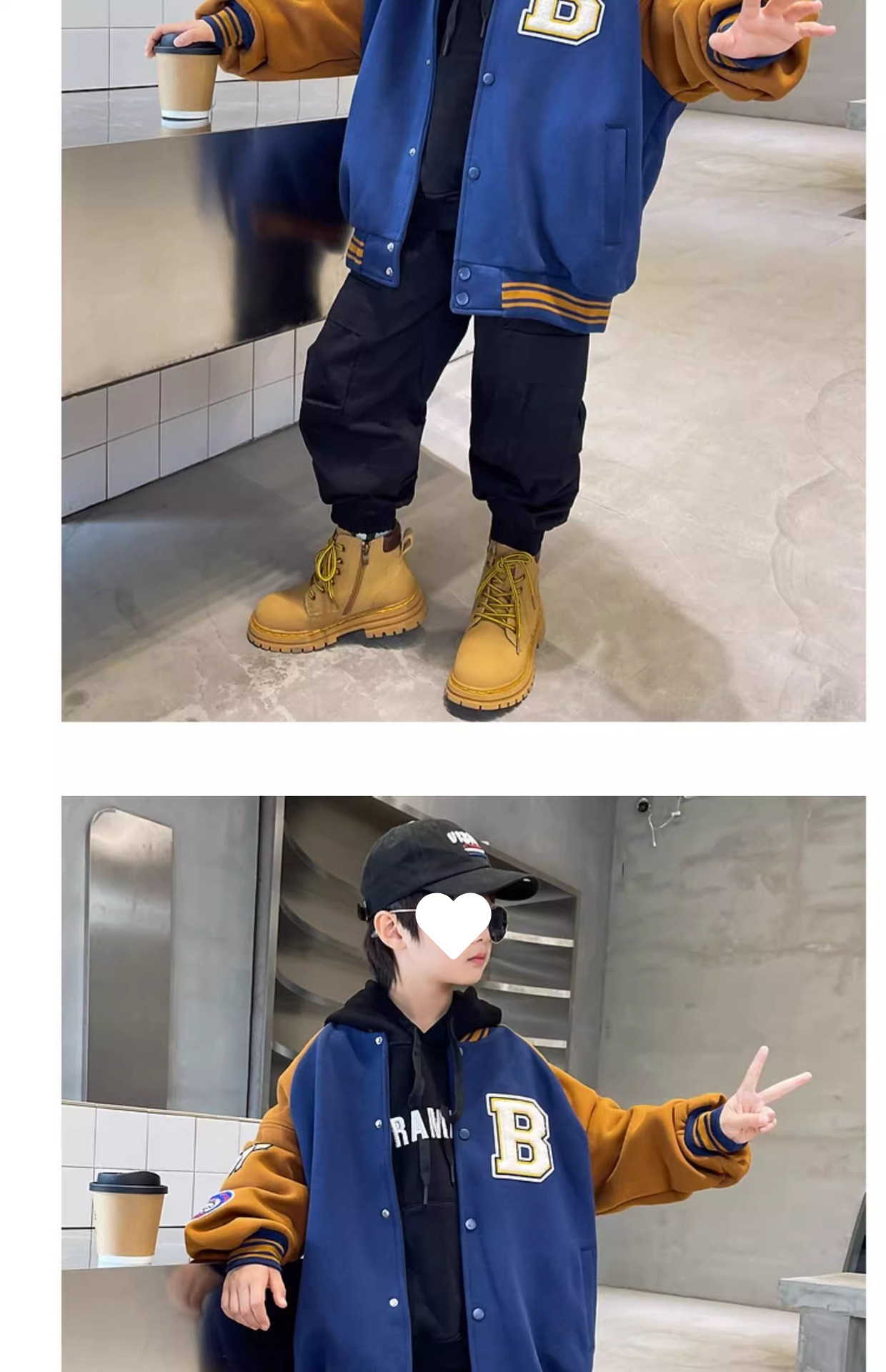 남아 겨울웨어 기모 재킷 2023 새로운 중형 어린이 컬러 블록 편지 자수 두꺼운 야구 세트 한국 가디건스토어 가기
