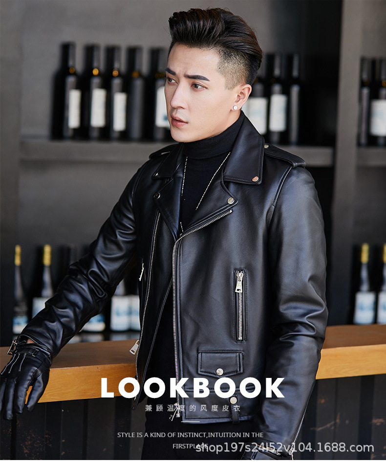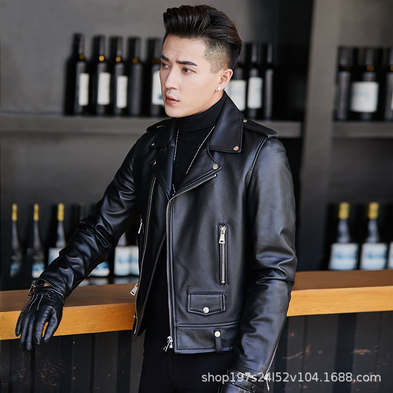 2024 봄 신상 헤이닝 가죽 자켓 바이커 가죽 재킷 남성용 짧은 스타일 슬림핏 한국 스타일 멋진 청년 재킷 트렌디스토어 가기