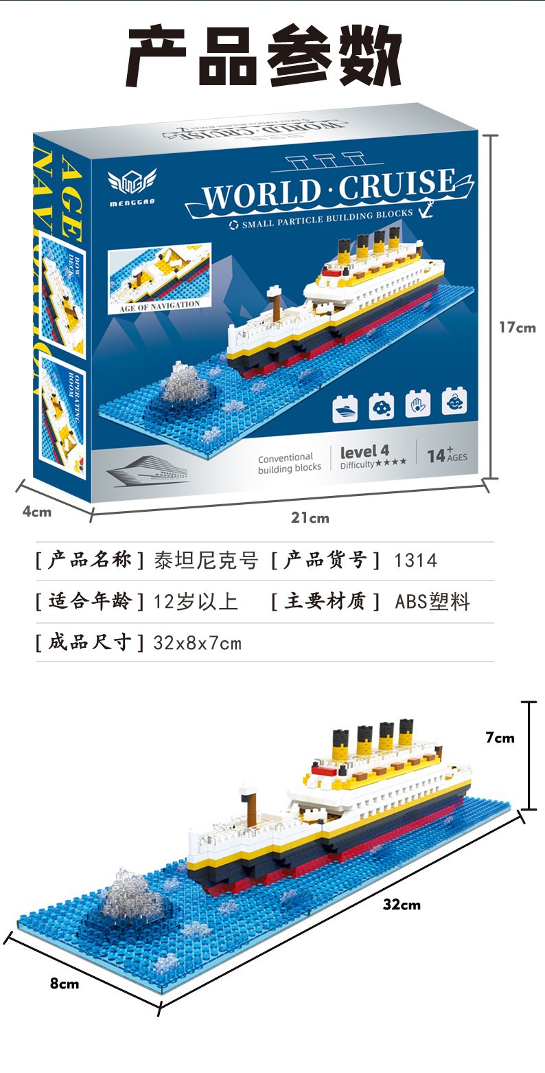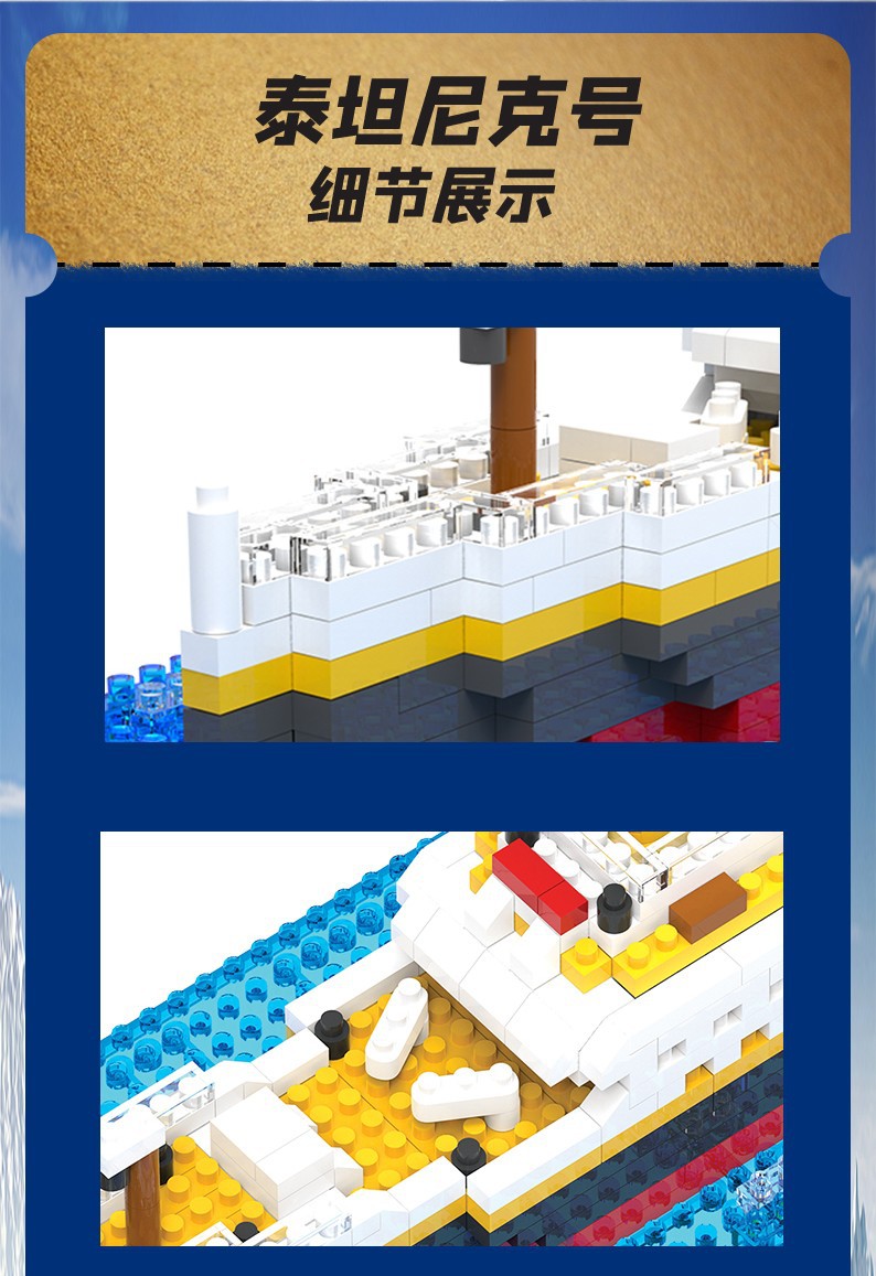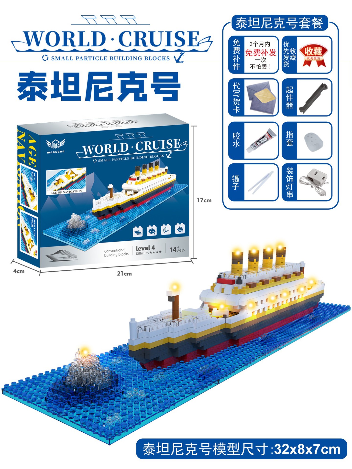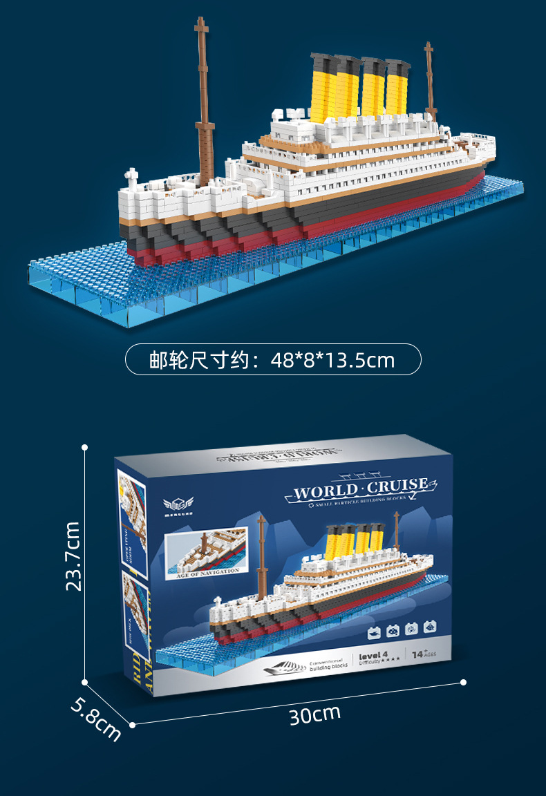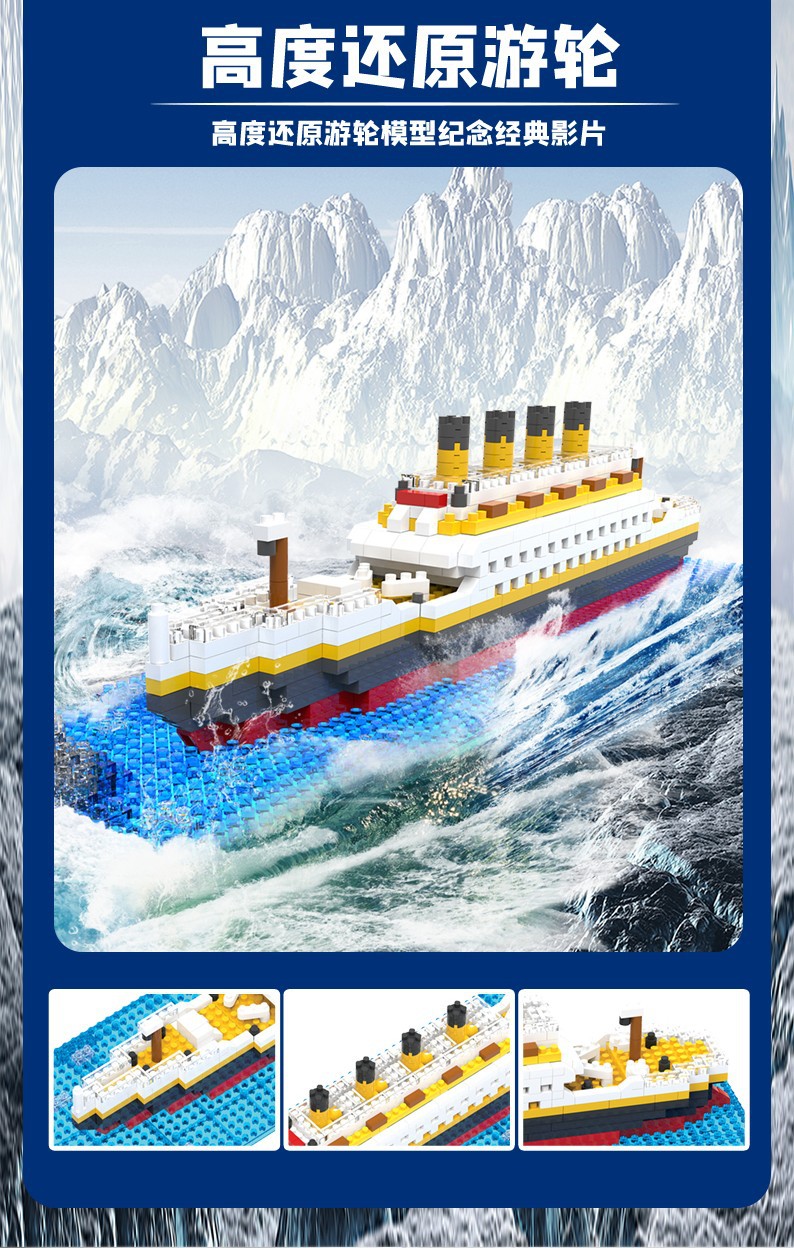 타이타닉 미니어처 빌딩 블록 어린이 교육 난이도 크루즈 패치 장식품 장난감 소년과 소녀를위한 선물