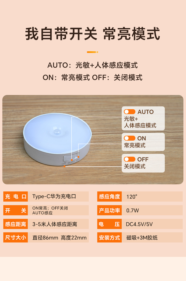 86mmABS壳 无开关 白光:尺寸86mm,天黑自动亮,无开关,电池容量:400mah。外壳ABS