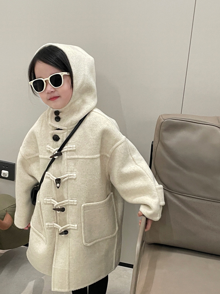 소년 소녀 코트 가을과 겨울 새로운 한국 기질 혼 버클 후드 트위드 코트 조수 어린이 머리카락 세대스토어 가기