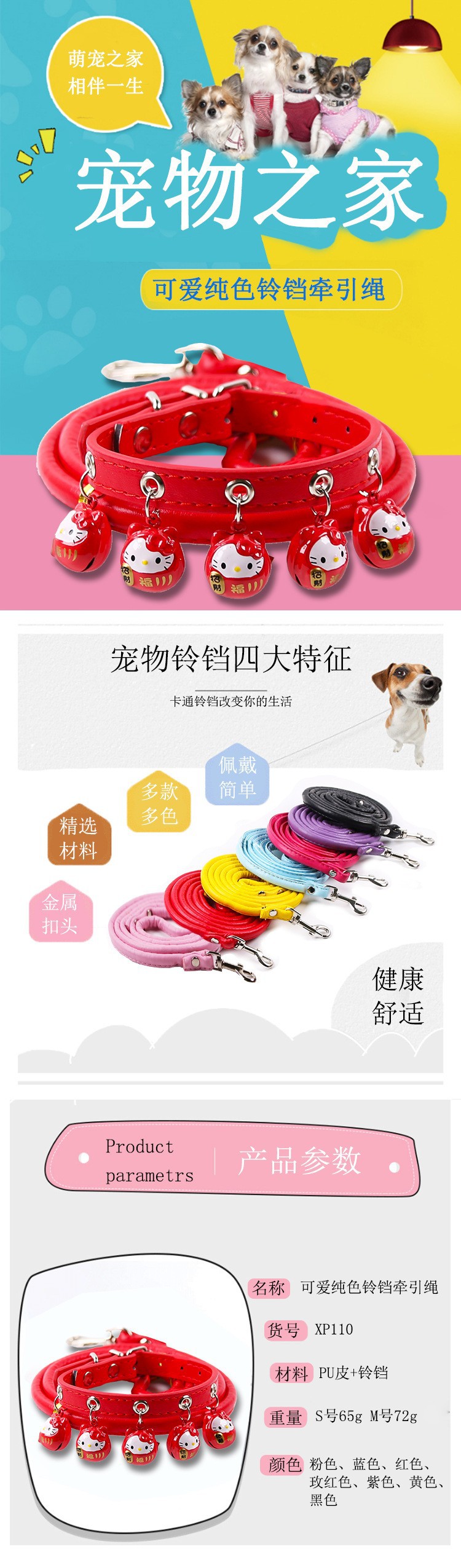 애완 동물 용품 고양이 개 벨 개 목걸이 테디 작은 개 큰 벨 고양이 목걸이 가죽 끈