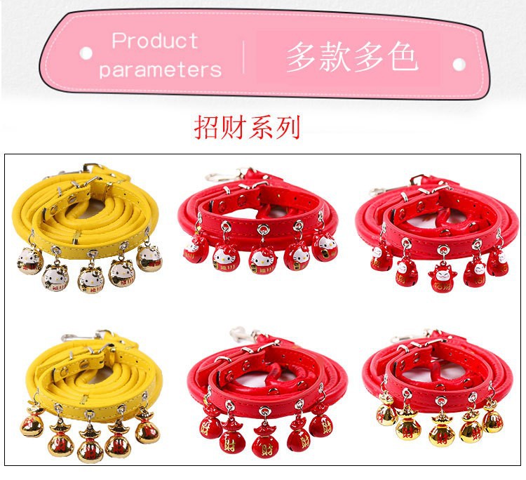 • 5개의 벨 레드 머니 백 칼라 + 레드 가죽끈