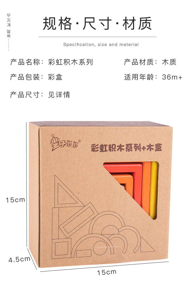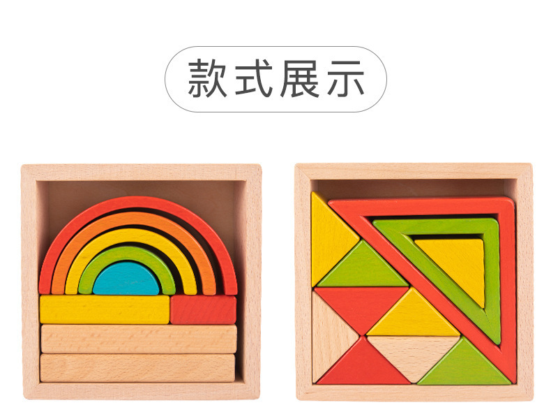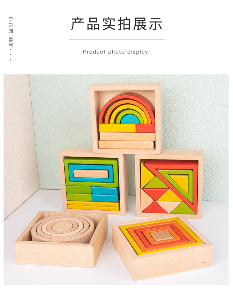 너도밤 나무 무지개 빌딩 블록 조합 단단한 나무 반원 기하학적 그림 초등 학생을위한 인지 교육 보조 무지개 빌딩 블록 박스