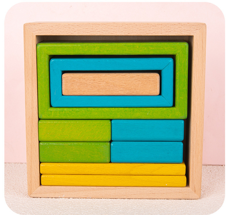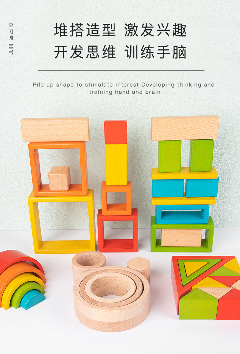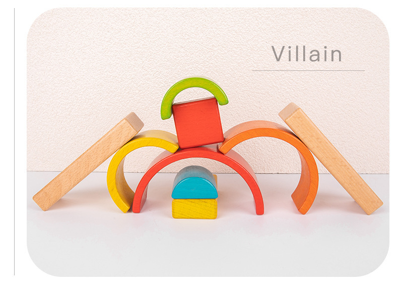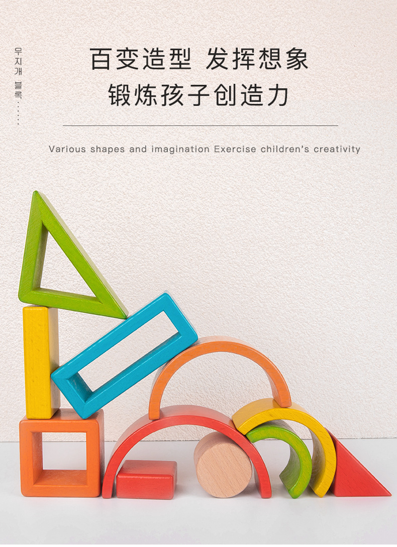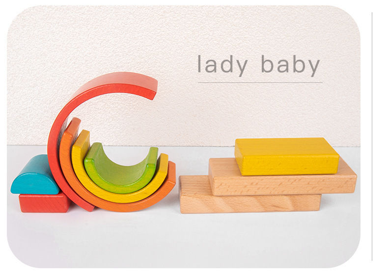 너도밤 나무 무지개 빌딩 블록 조합 단단한 나무 반원 기하학적 그림 초등 학생을위한 인지 교육 보조 무지개 빌딩 블록 박스스토어 가기