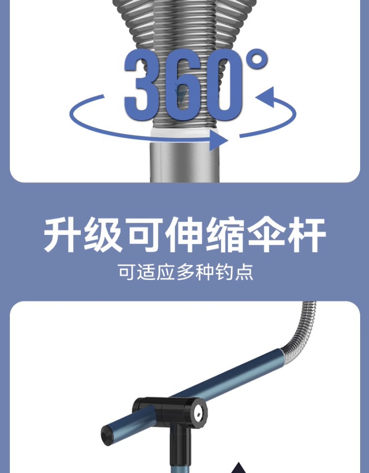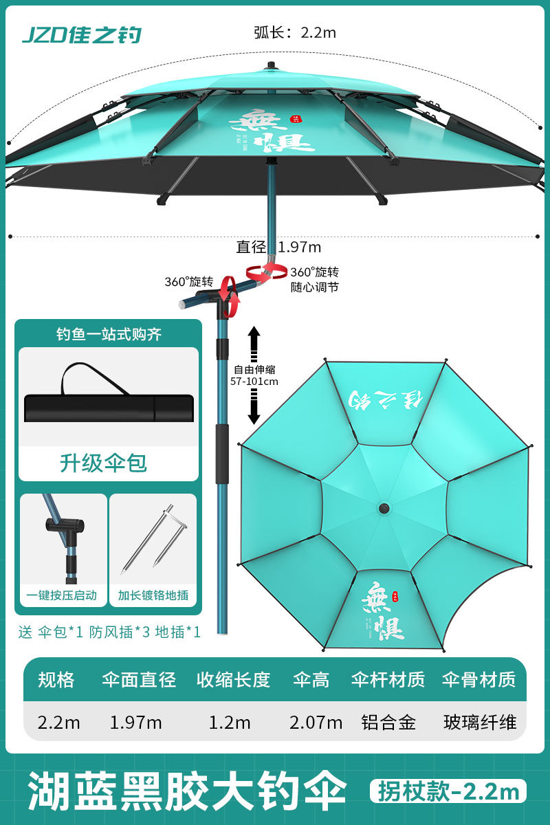 • [4 세대 목발 업그레이드 블랙 접착제 우산] 전체로드 스테인레스 스틸 2.2m-레이크 블루 + 길이 30cm 착탈식 인서트