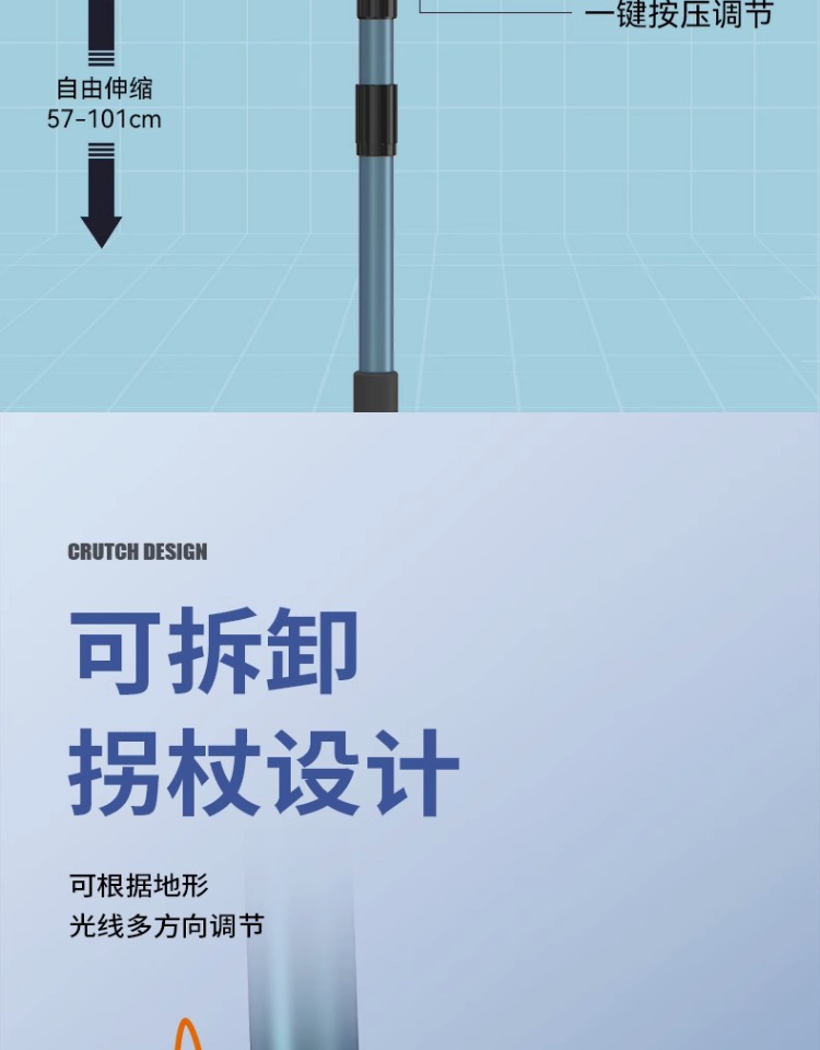• [4 세대 목발 업그레이드 검정 고무 우산] 통봉 알루미늄 합금 2.2m-다크 블루 + 연장 30cm 분리형 인서트