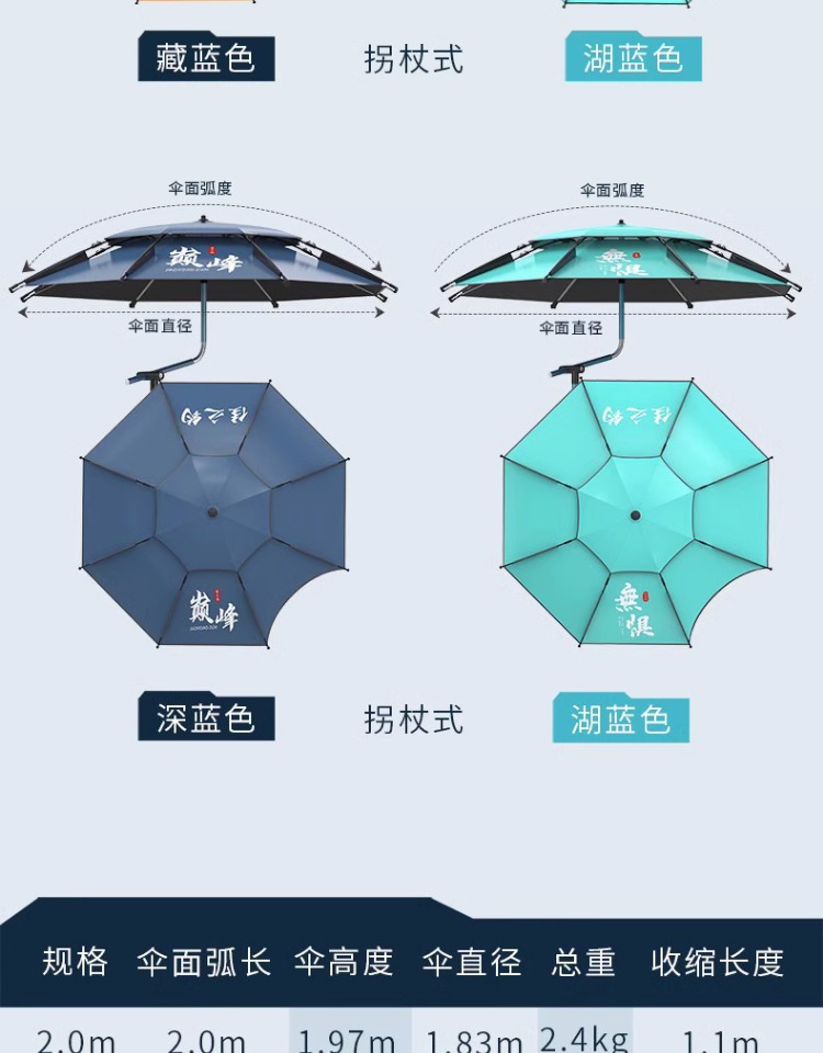 • [4 세대 목발 업그레이드 블랙 접착제 우산] 전체로드 알루미늄 합금 2.0m-레이크 블루 + 길이 30cm 이동식 인서트