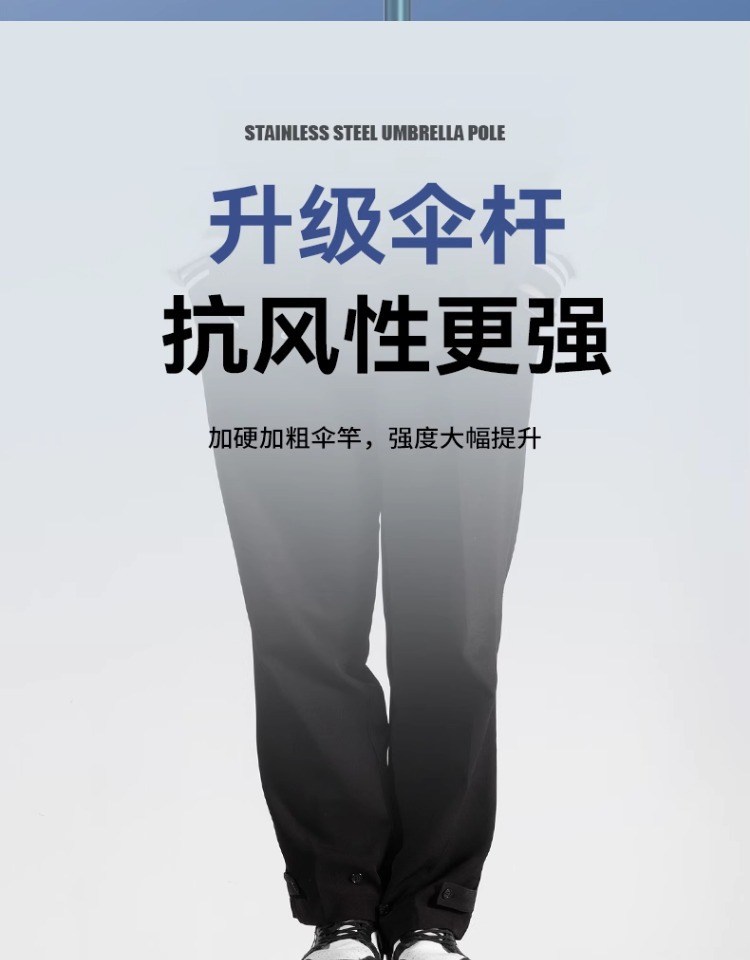 • [4 세대 목발 업그레이드 블랙 접착제 우산] 로우로드 스테인레스 스틸 2.6m-스카이 블루 + 베이스 메탈 인서트