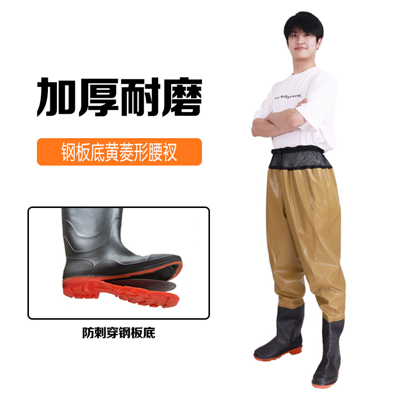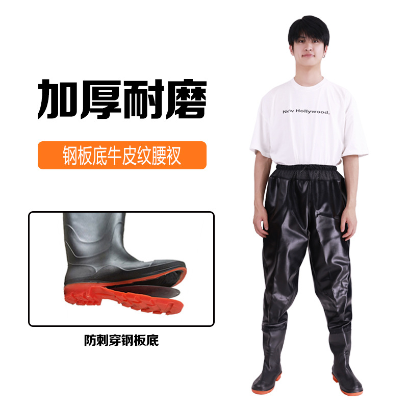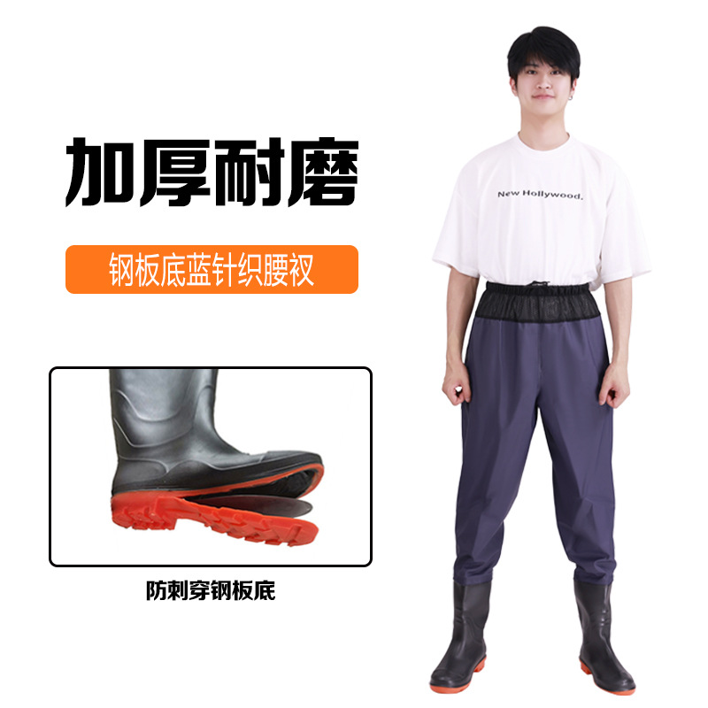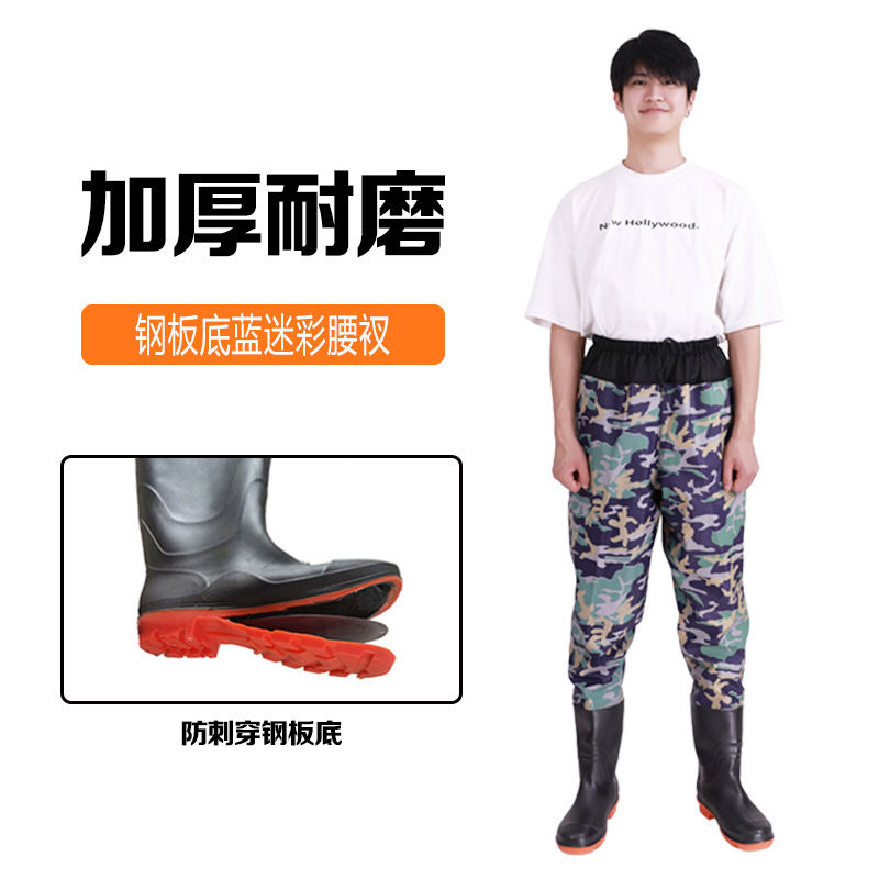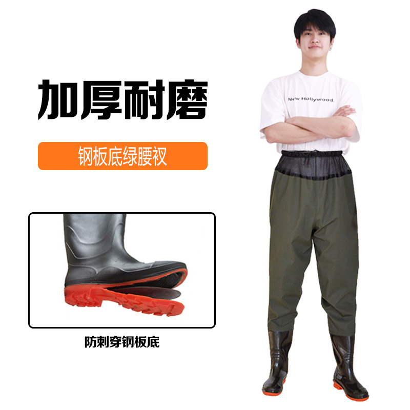원피스 워터 팬츠 스틸 플레이트 밑창 허리 시트 가죽 포크 팬츠 하프 바디 허리 길이 낚시 남성과 여성의 웨이딩 팬츠 레인 팬츠