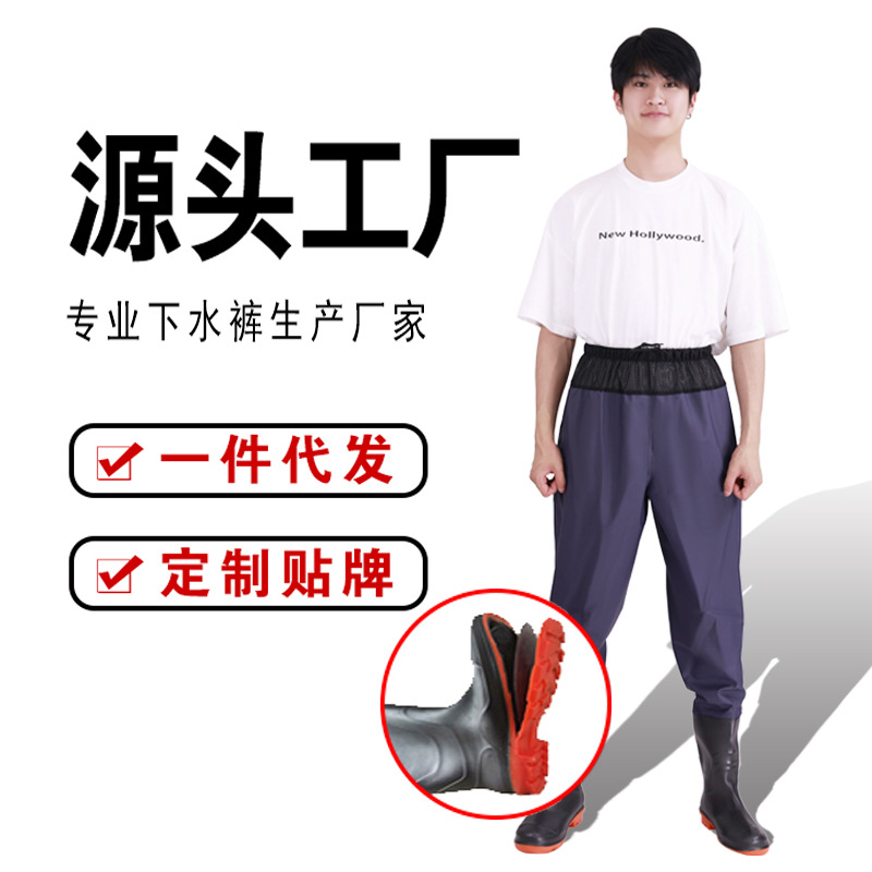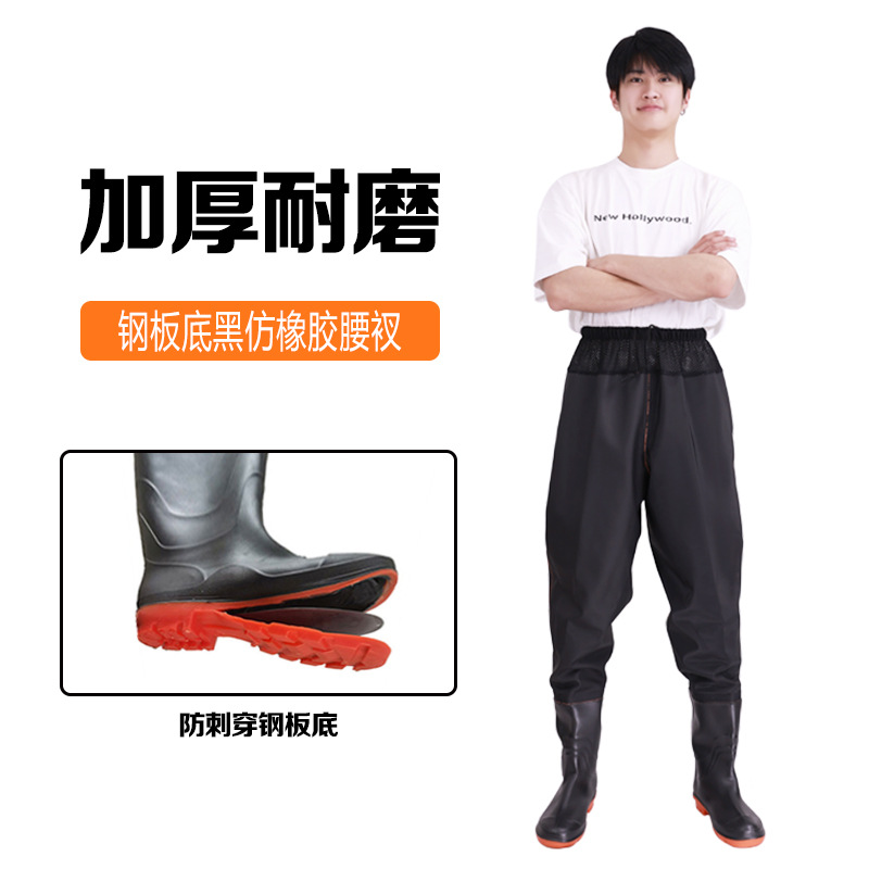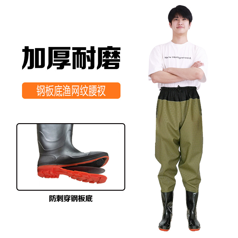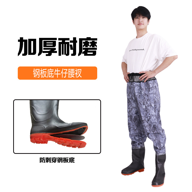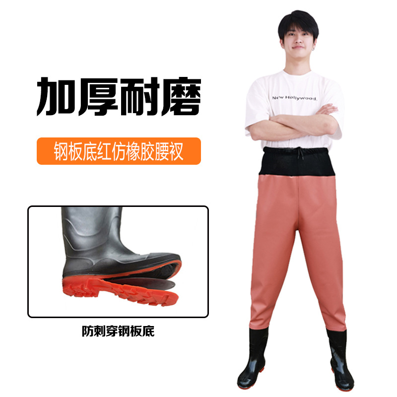 원피스 워터 팬츠 스틸 플레이트 밑창 허리 시트 가죽 포크 팬츠 하프 바디 허리 길이 낚시 남성과 여성의 웨이딩 팬츠 레인 팬츠