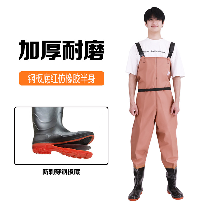 스틸 플레이트 바닥 워터 팬츠 스틸 플레이트 밑창 가죽 포크 팬츠 하프 길이 원피스 낚시 남녀 낚시 웨이딩 팬츠 레인 팬츠