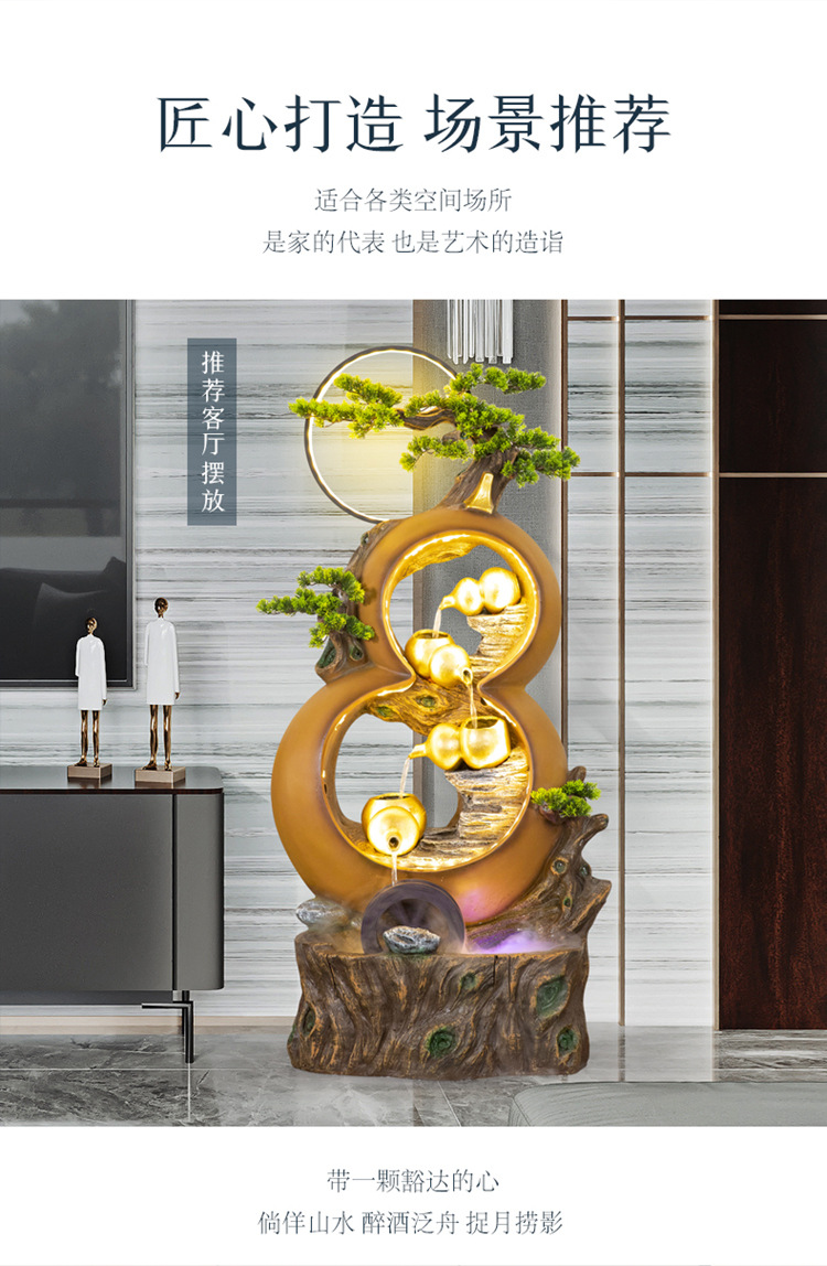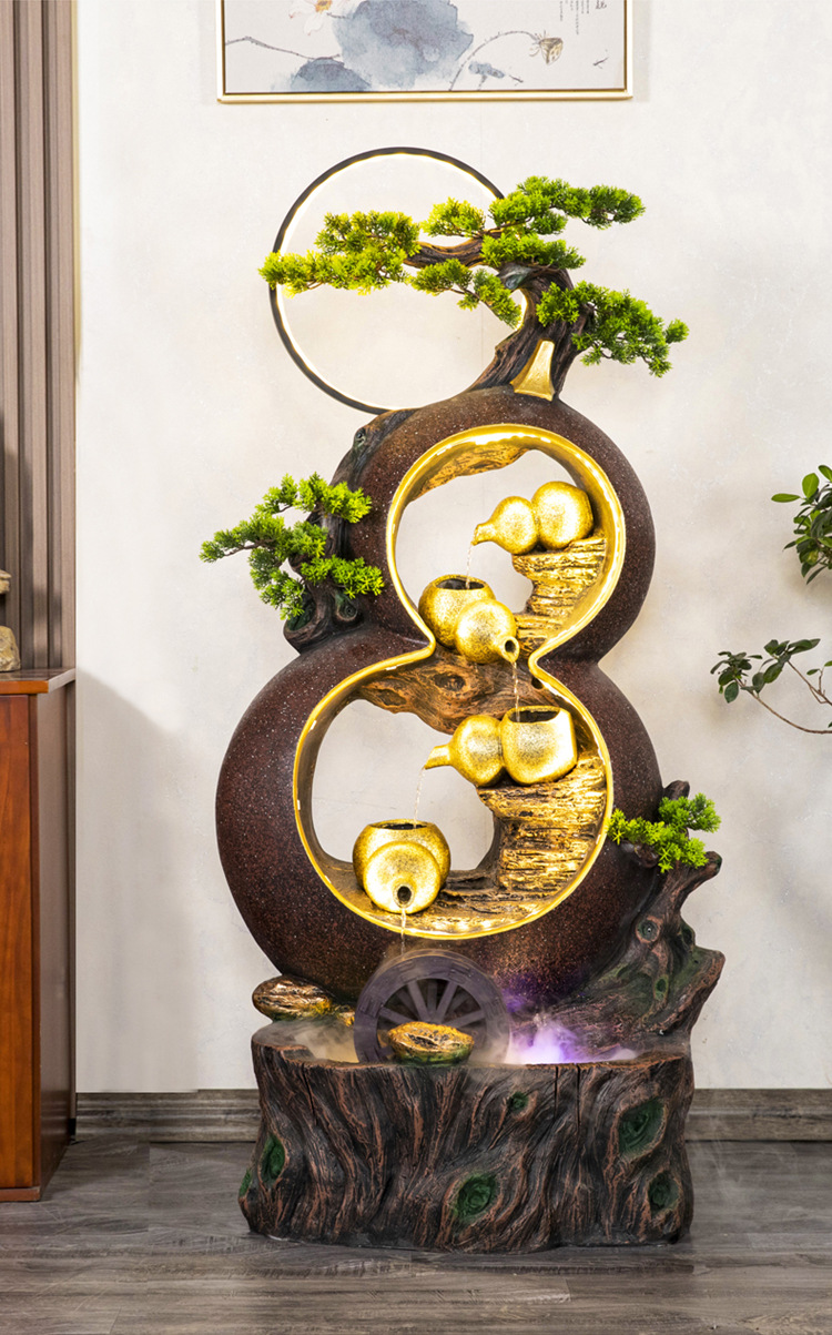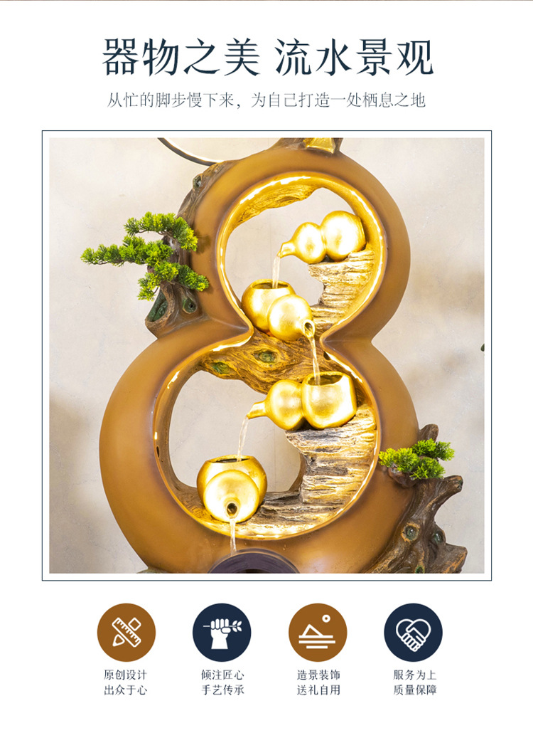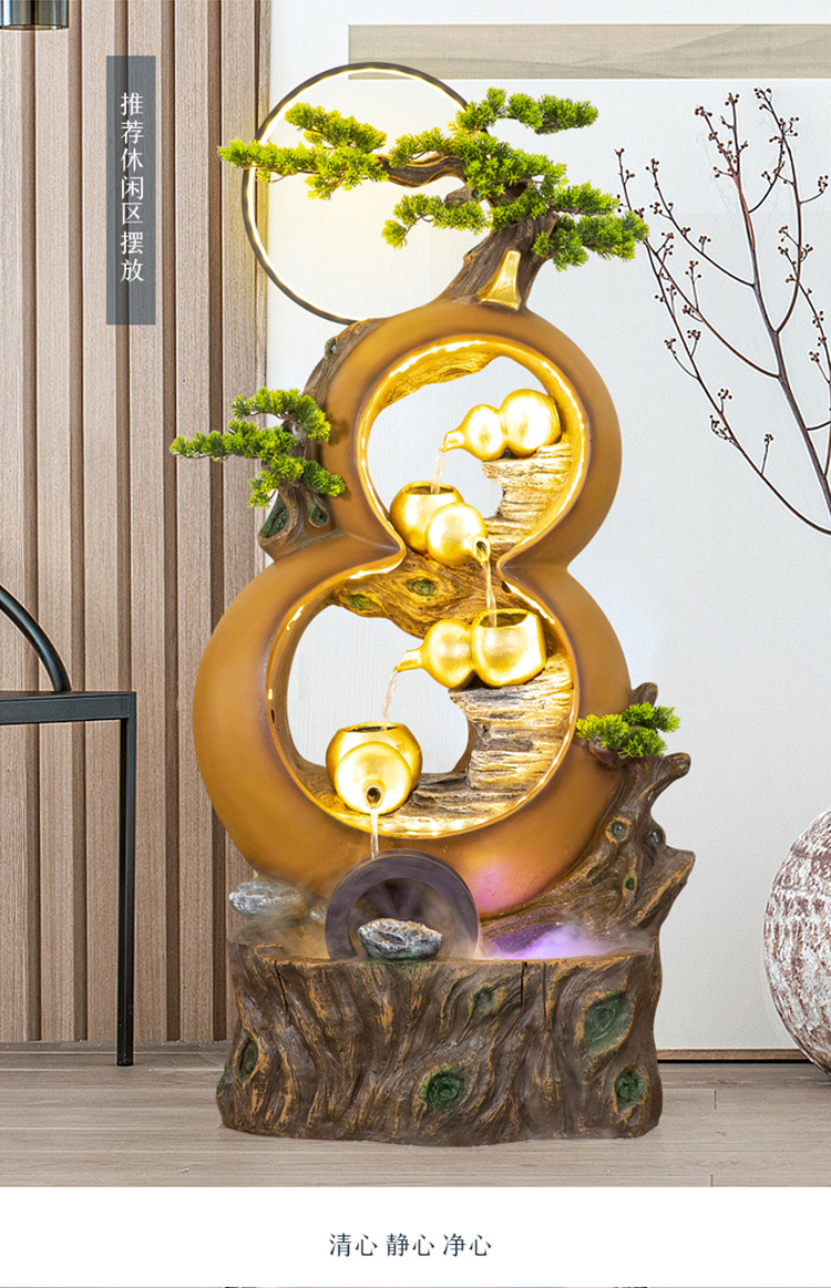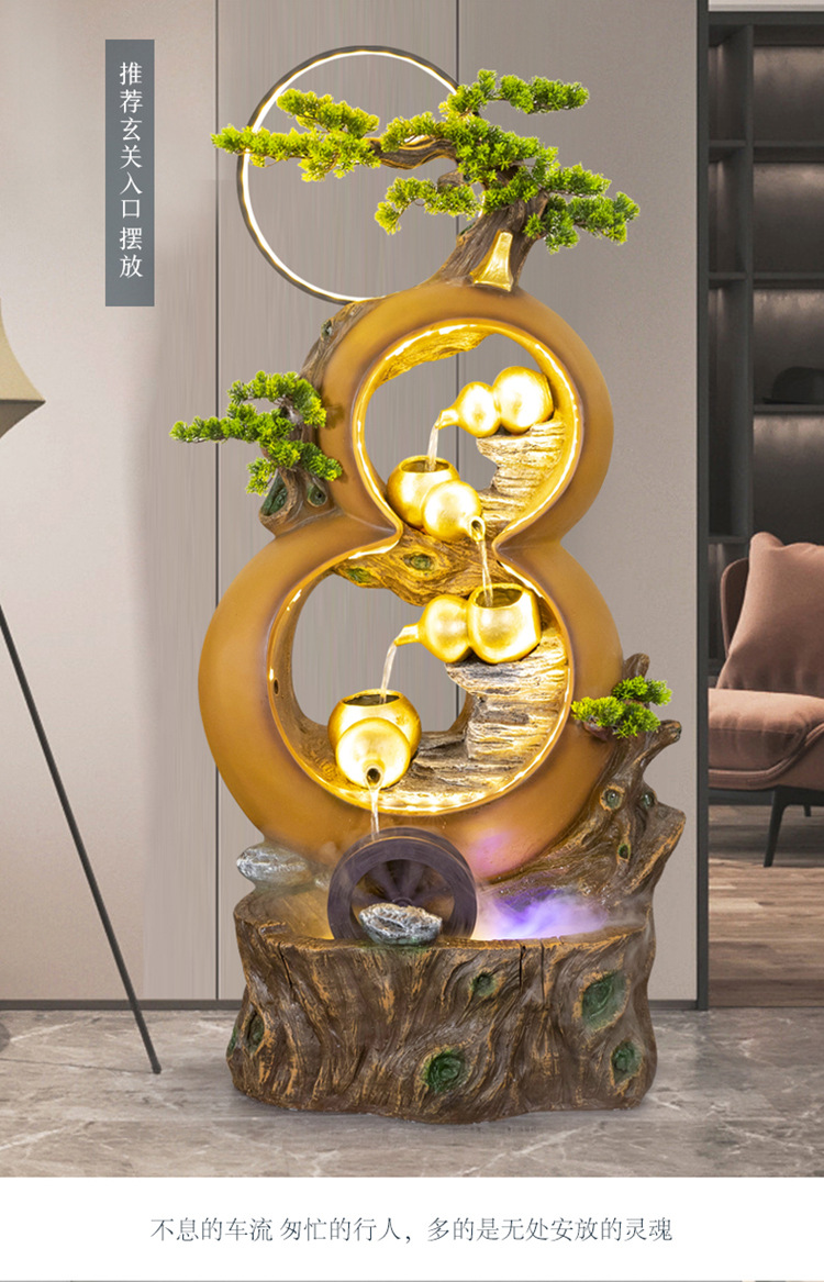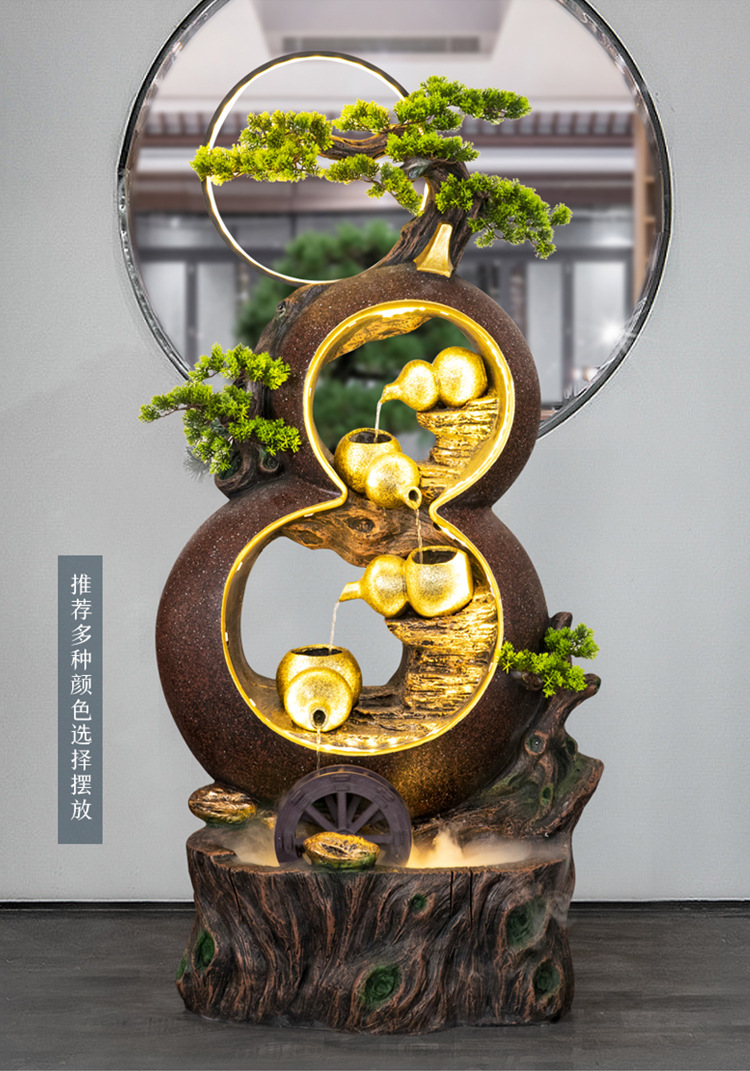 조롱박 바위 흐르는 물 분수 장식 사무실 거실 가정 장식 풍수 바퀴 순환 물 풍경 착륙