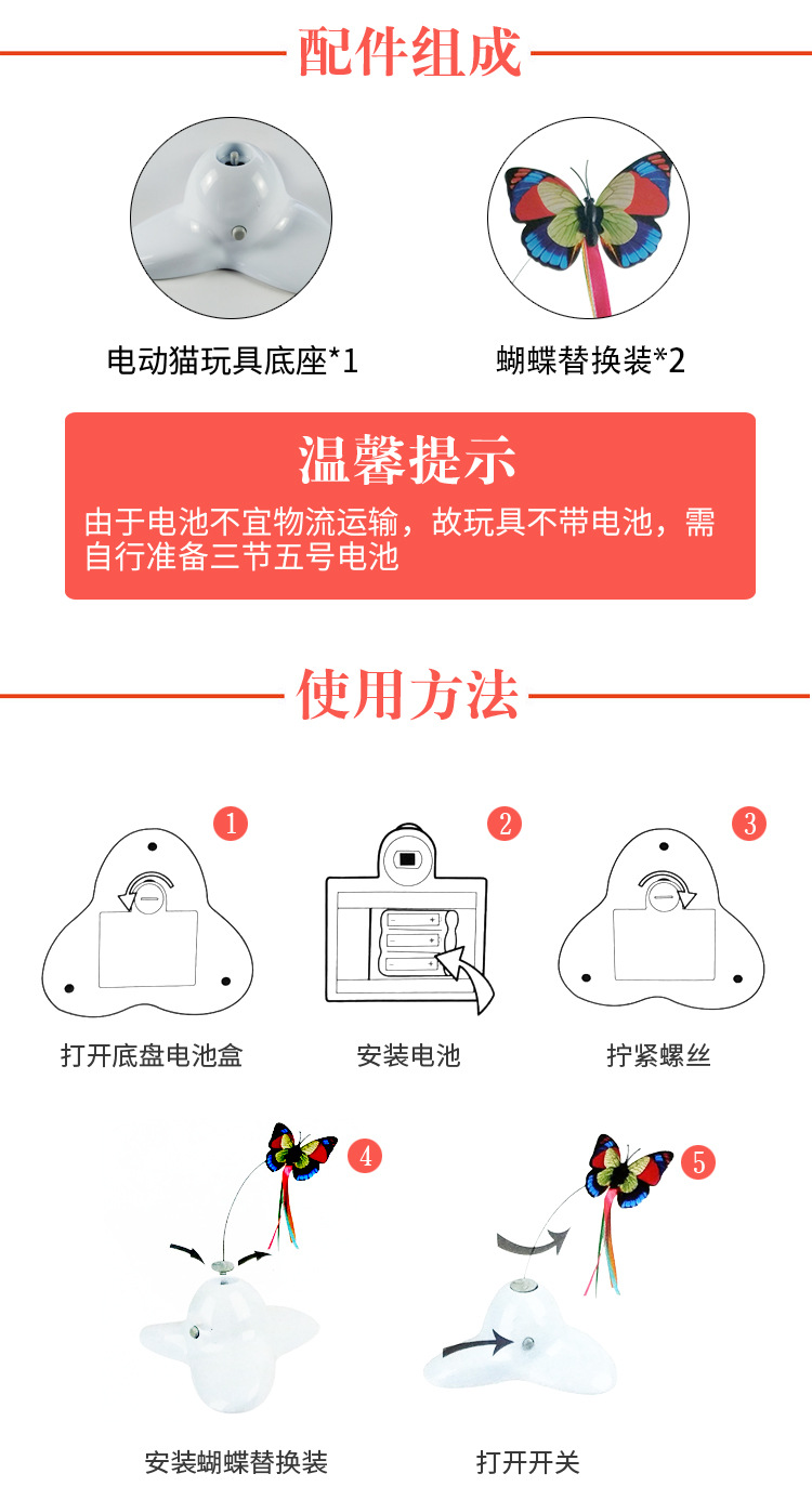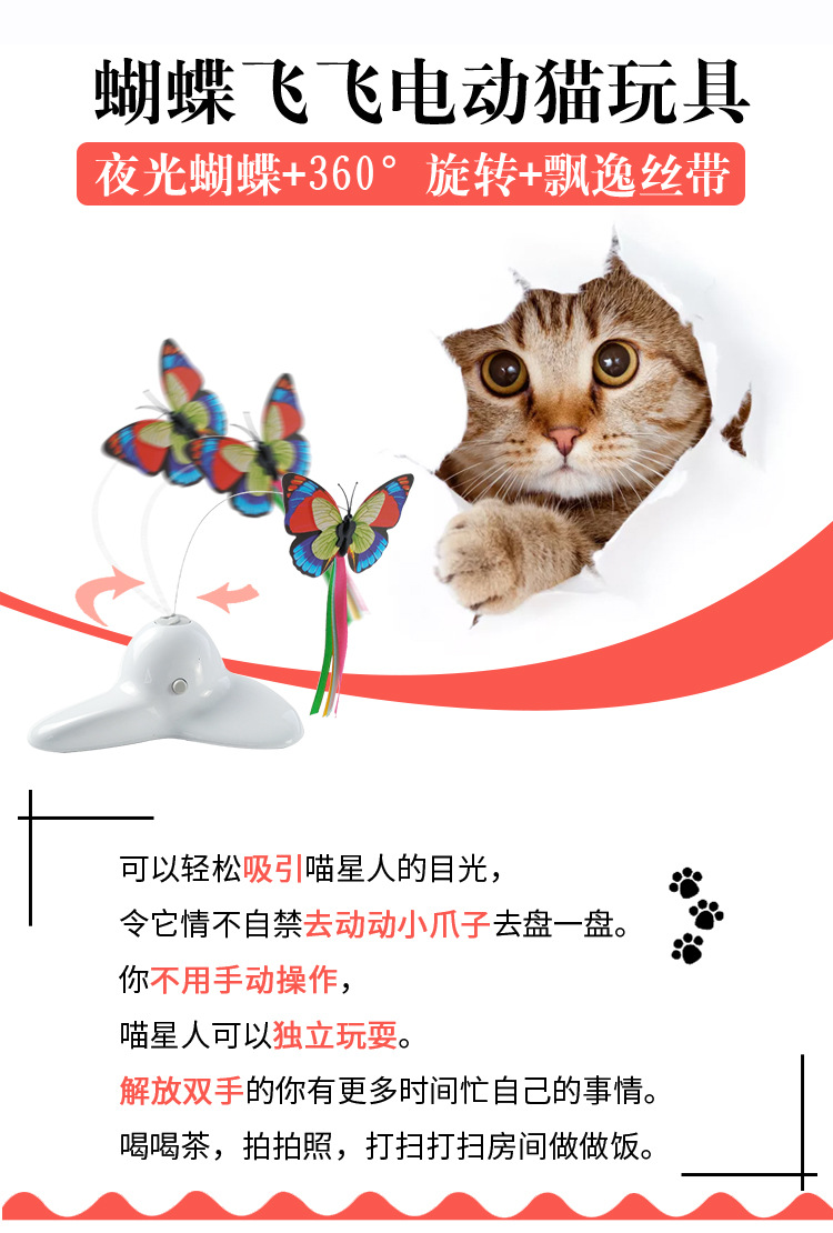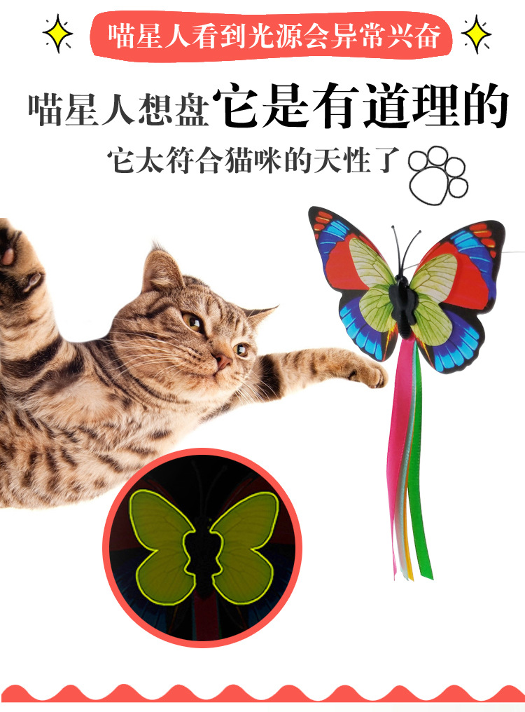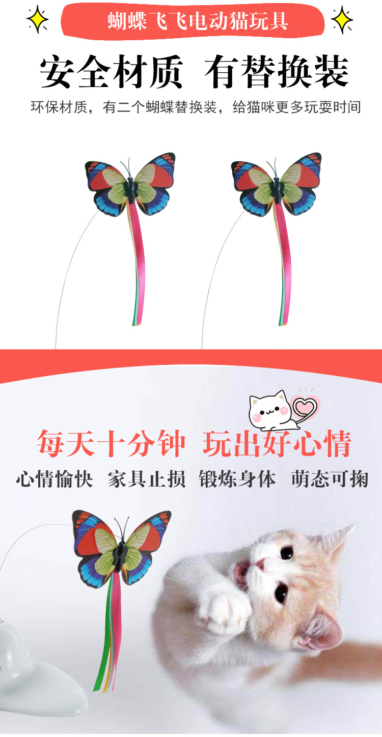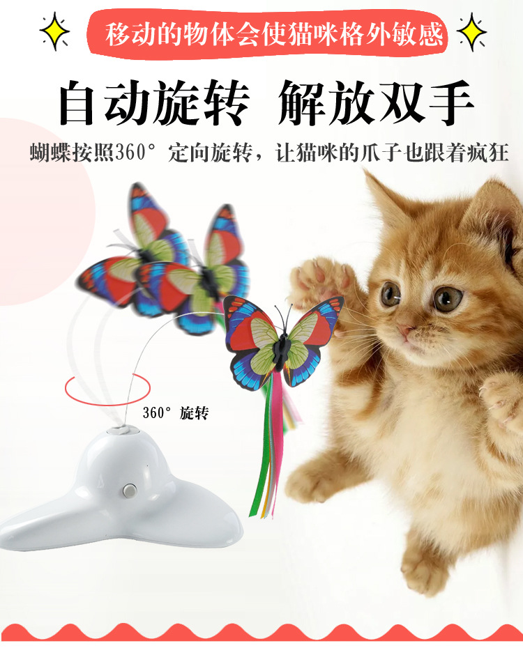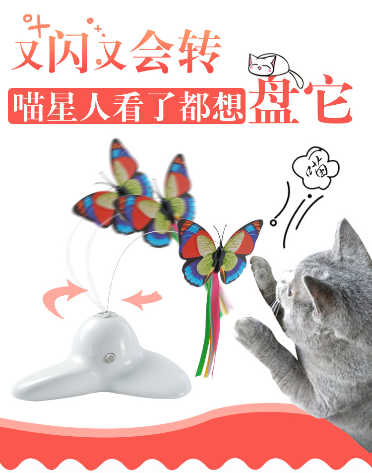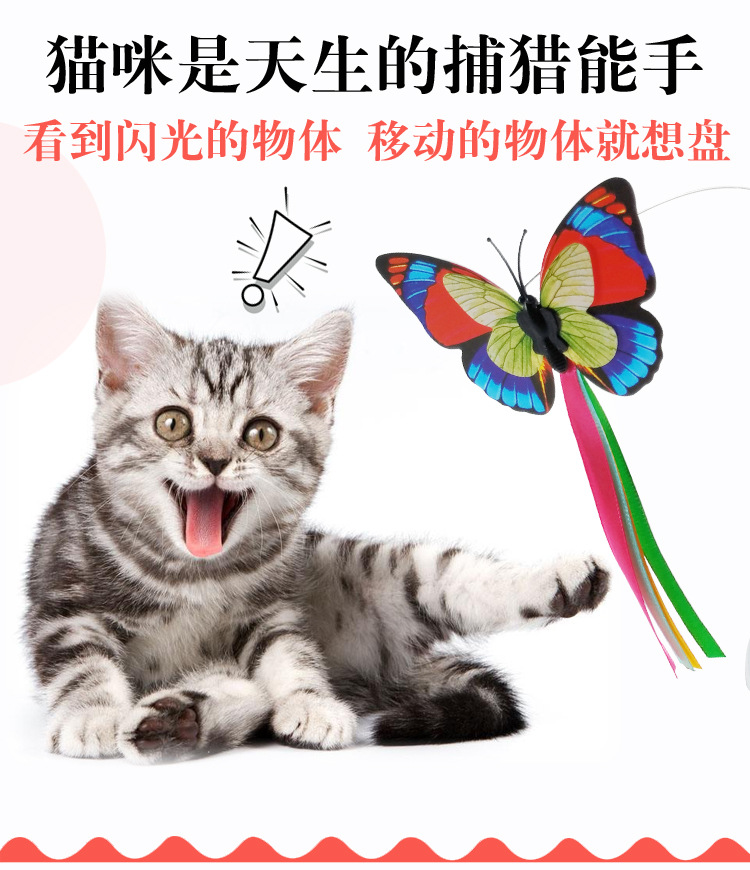 공장 직접 전기 고양이 장난감 애완 동물 대화 형 고양이 장난감 삼각형 나비 비행 전기 고양이 놀리는 막대기스토어 가기