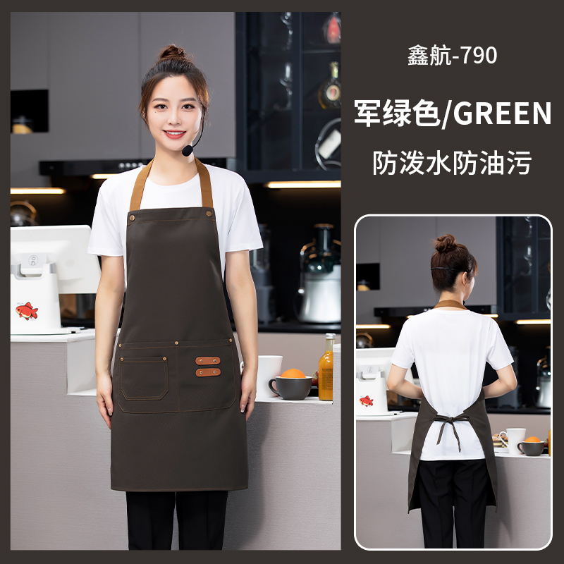 • 더블 가죽 브랜드 교수형 목 앞치마 그린