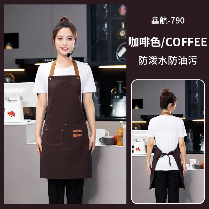 • 더블 가죽 브랜드 걸이 목 앞치마 얕은 커피