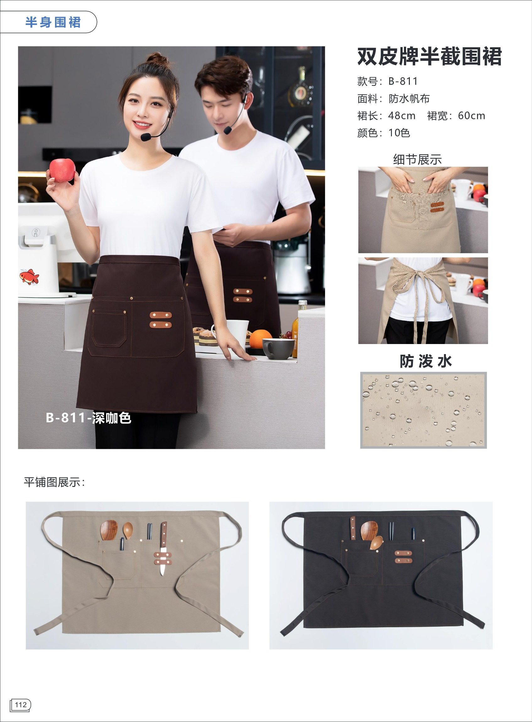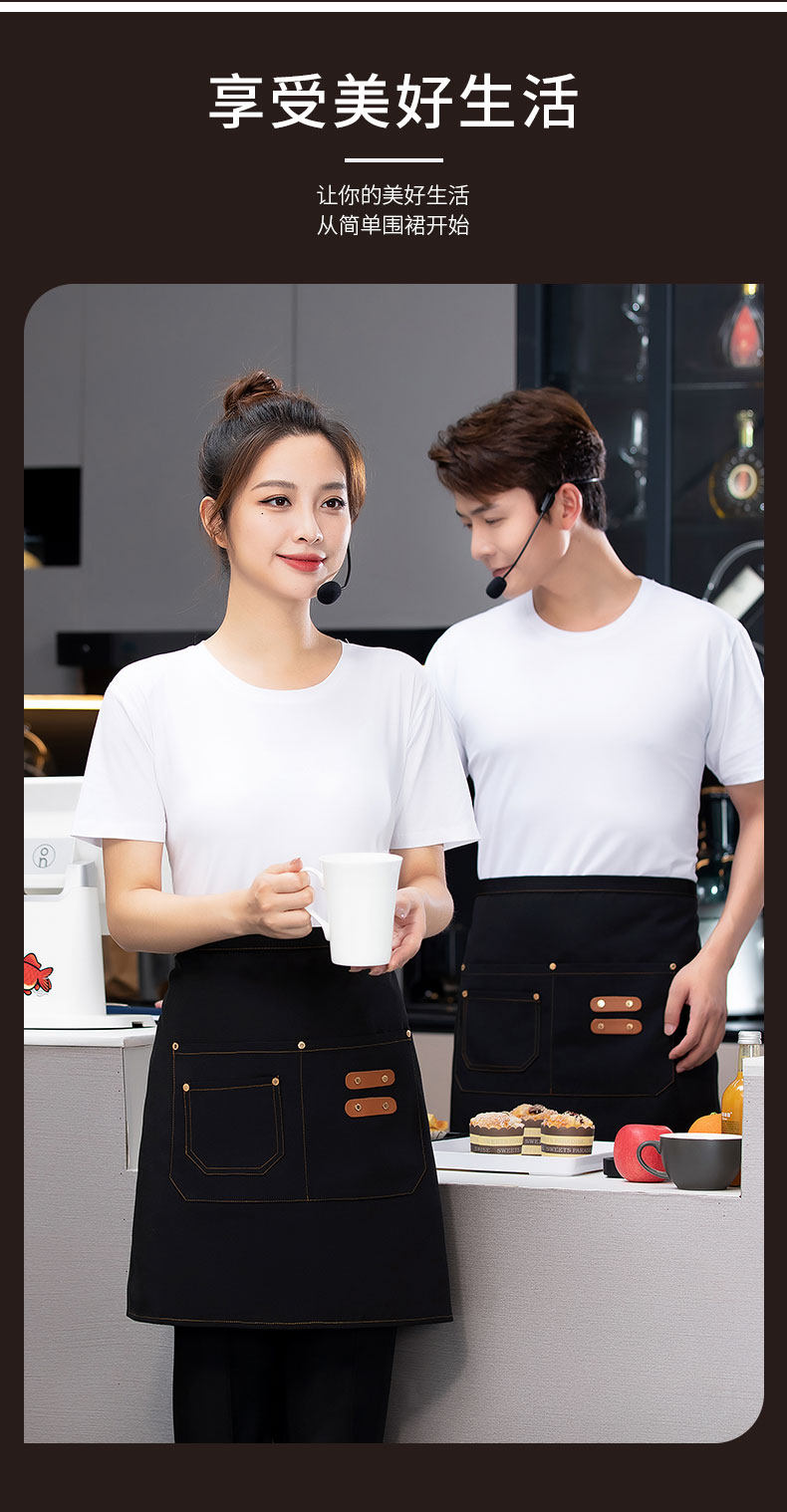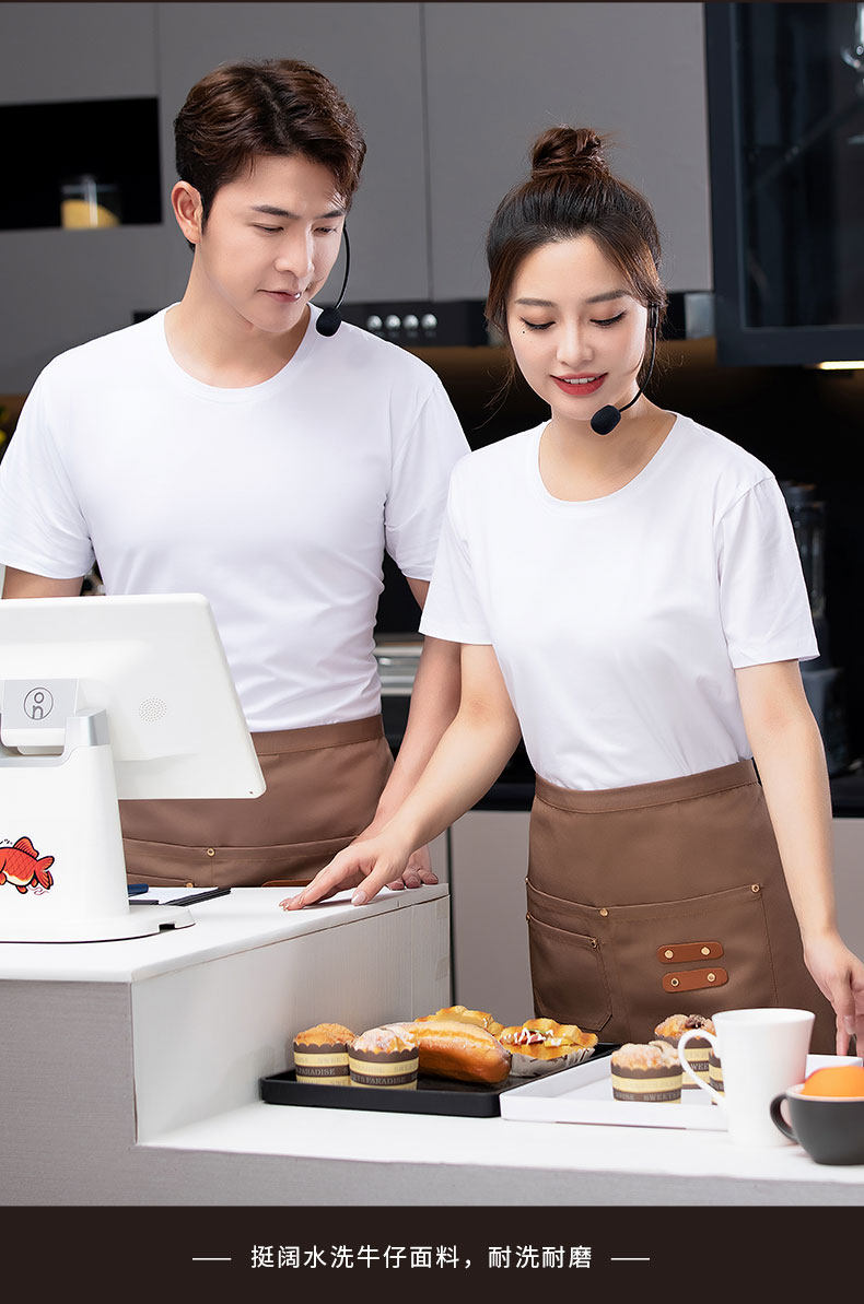 웨스턴 레스토랑 웨이터 남성과 여성 반 길이 짧은 반 길이 작은 앞치마 허리 커피 우유 차 냄비 레스토랑 베이킹 케이크 포인트