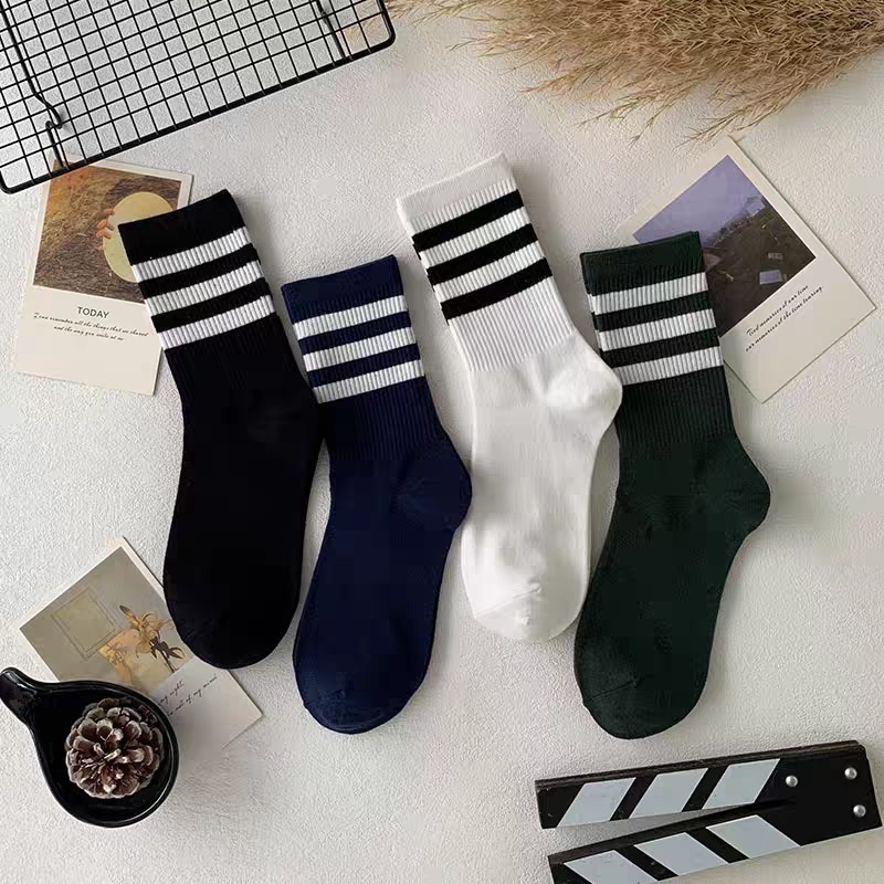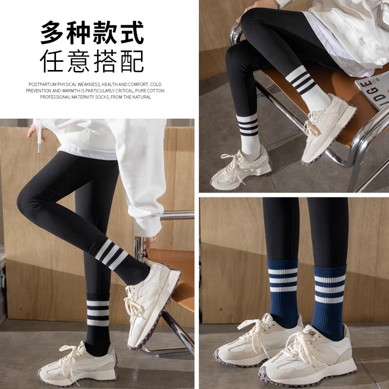 상어 바지 매칭 양말 여성용 가을 중간 길이 양말 순면 흰색 유행 인터넷 인기 스포츠 스트라이프 스타킹 가을과 겨울