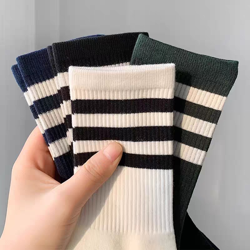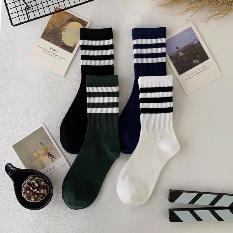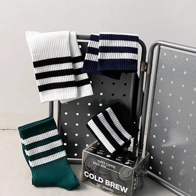 상어 바지 매칭 양말 여성용 가을 중간 길이 양말 순면 흰색 유행 인터넷 인기 스포츠 스트라이프 스타킹 가을과 겨울스토어 가기