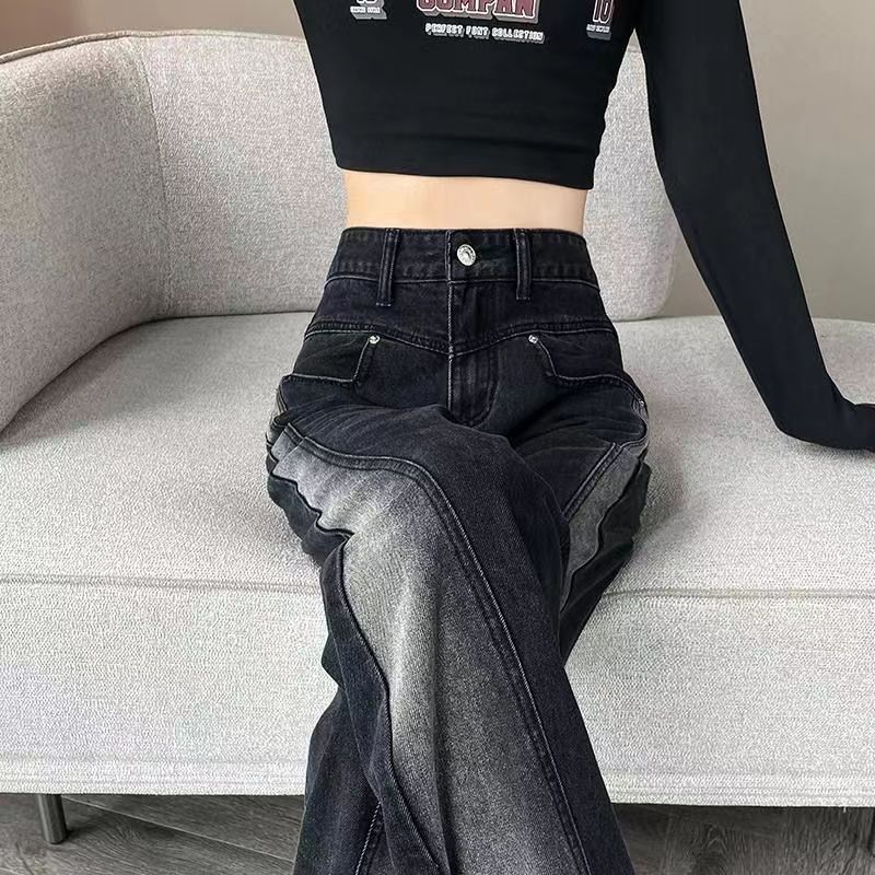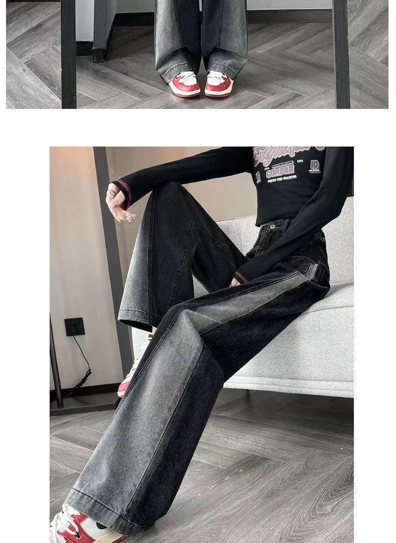 스트레이트 레그 청바지 여성의 2024 년 새로운 봄, 가을, 겨울 대비 컬러 디자인 감각 느슨한 슬림 와이드 다리 바지