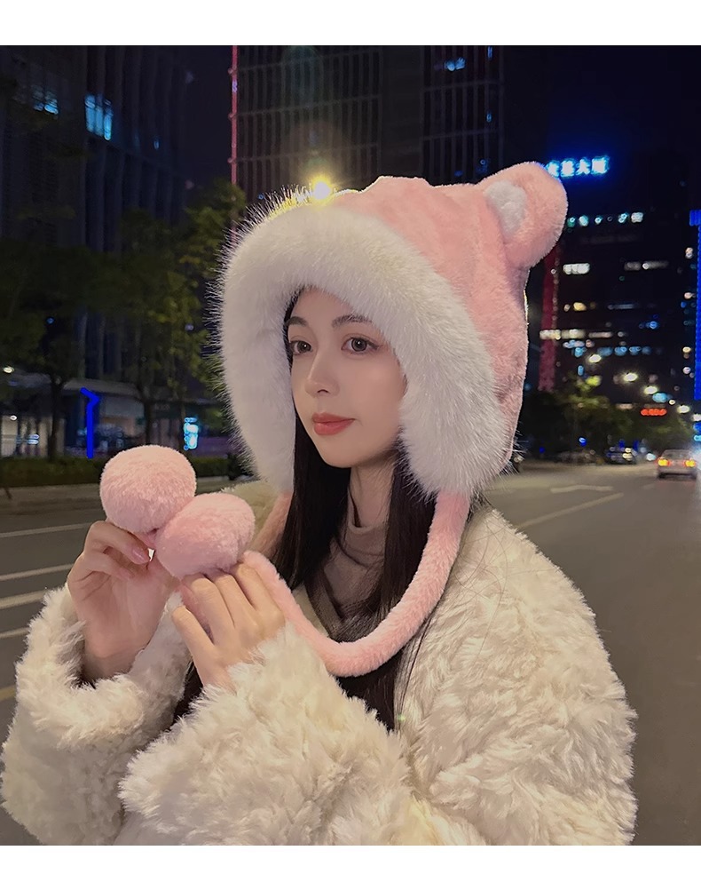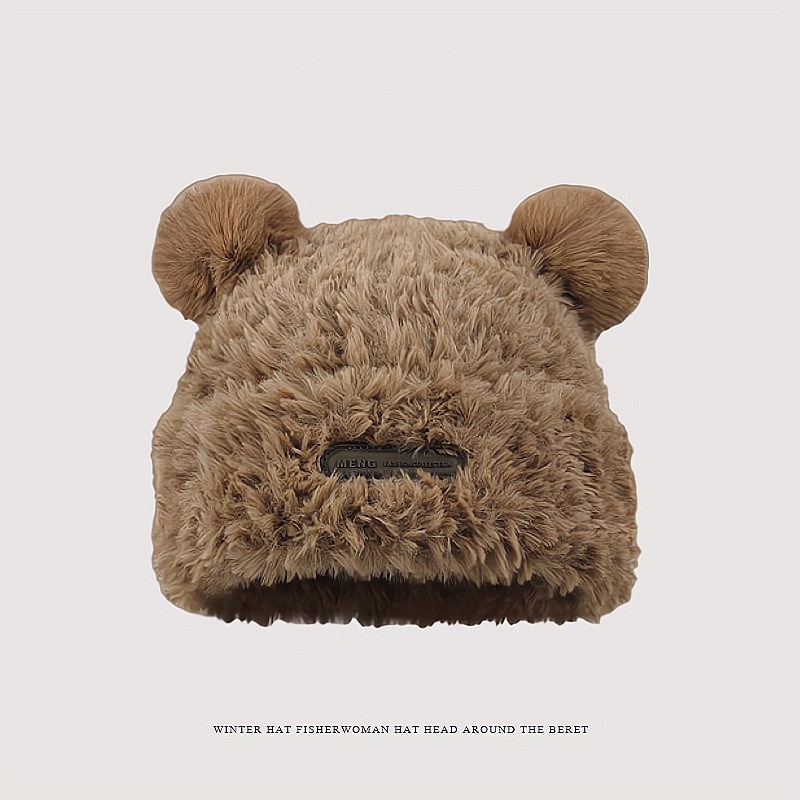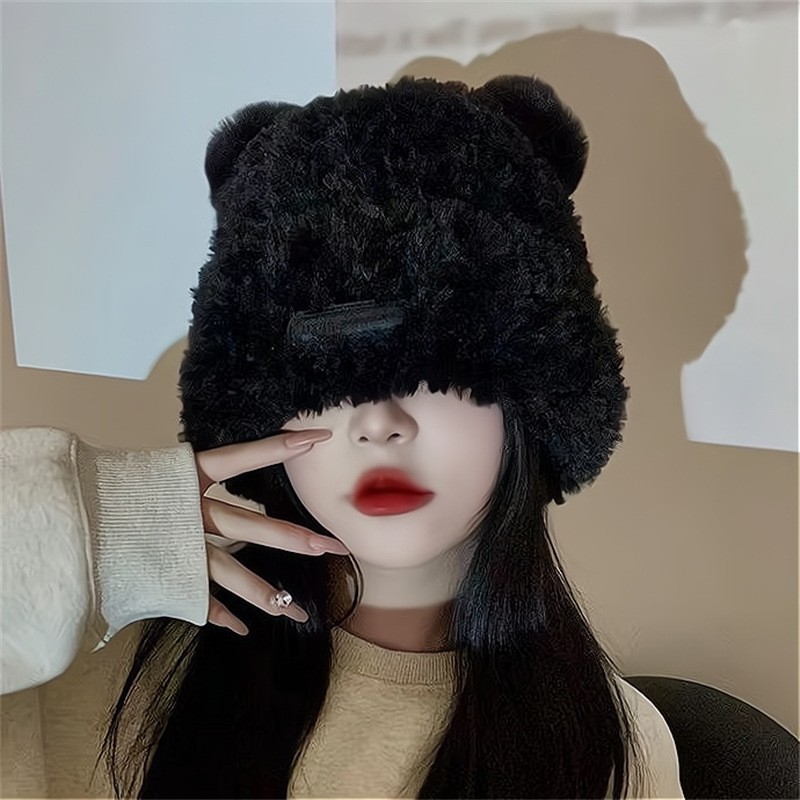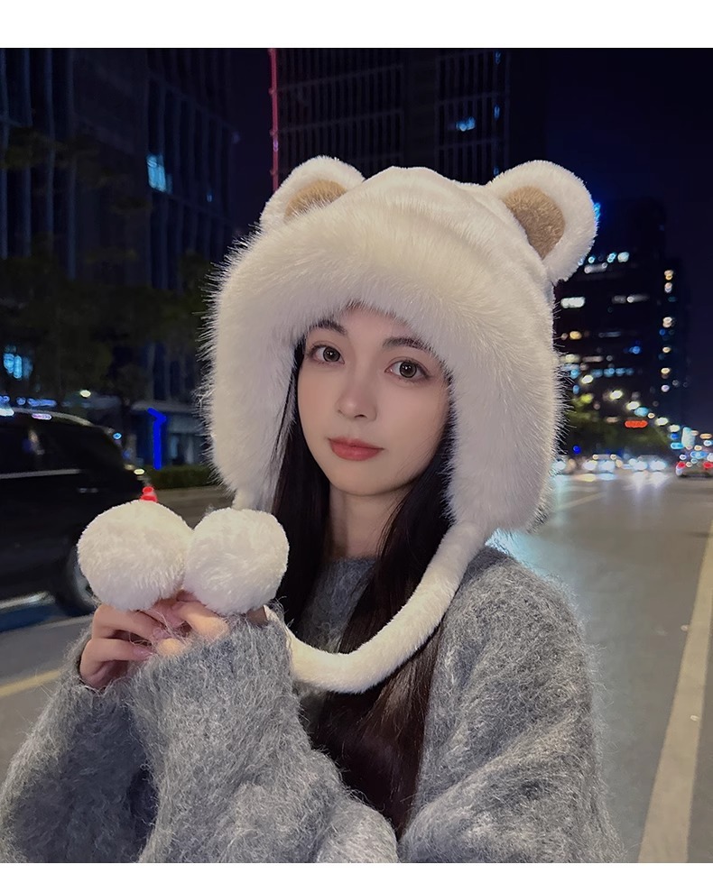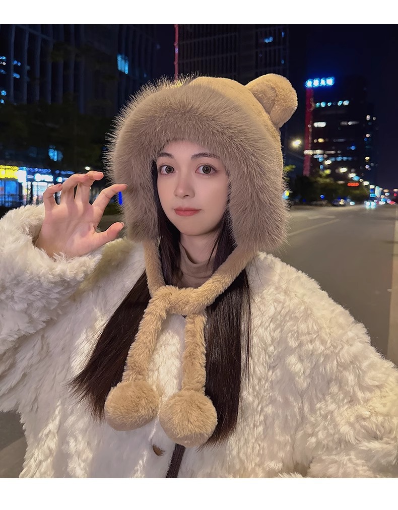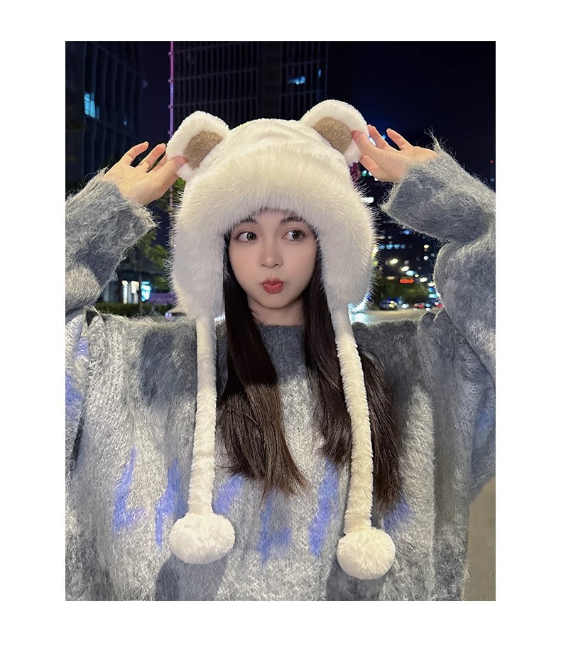 한국 스타일 귀여운 레이 펑 모자 여자의 가을과 겨울 곰 귀 푹신한 모자 기모 두꺼운 승마 감기 방지 귀 보호 모자