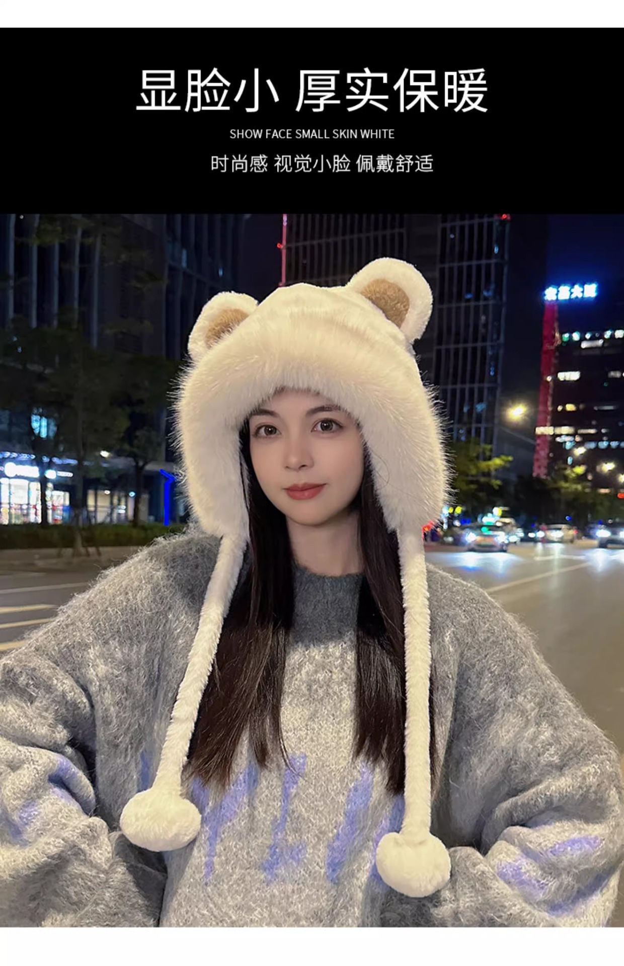 • 흰색/곰 귀 봉제 모자