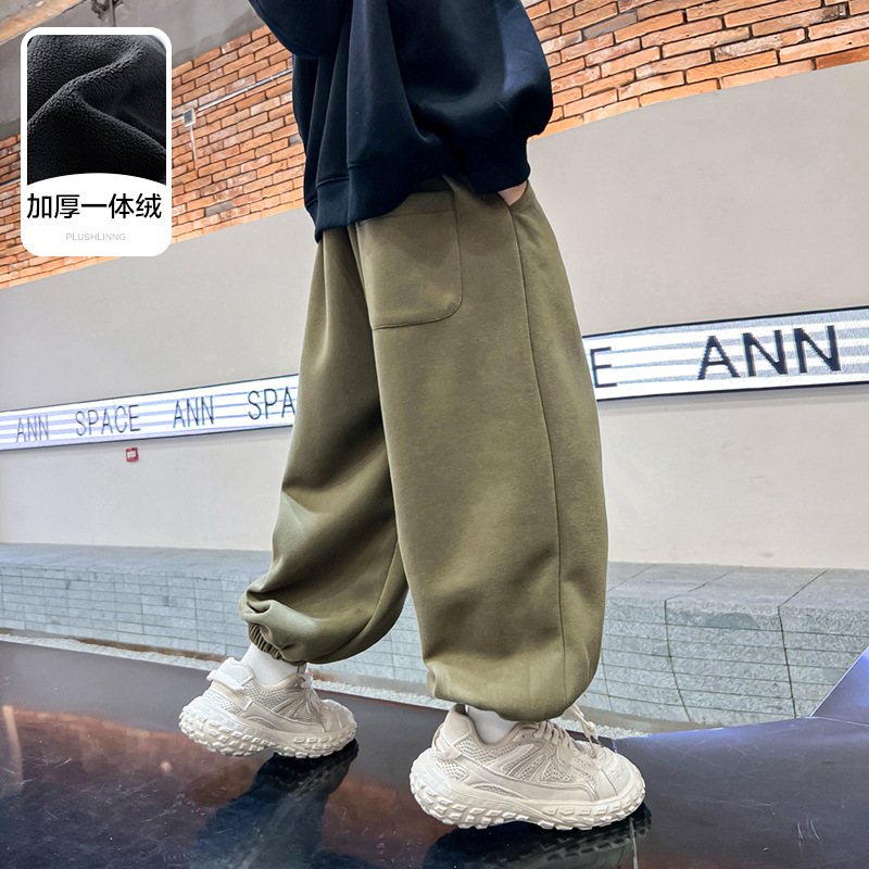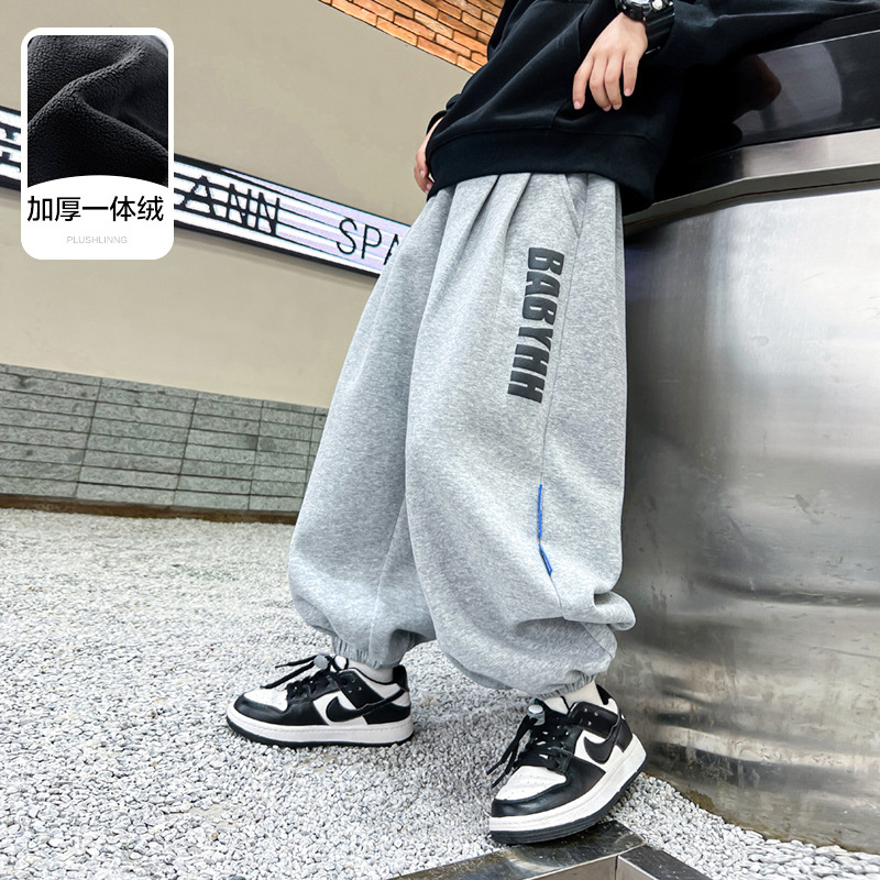 소년 가을, 겨울 두꺼운 원피스 벨벳 스웨트 팬츠 2024 새로운 어린이 캐주얼 바지 큰 어린이 느슨한 벨벳 바지스토어 가기