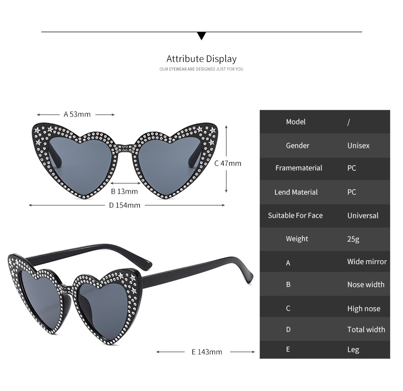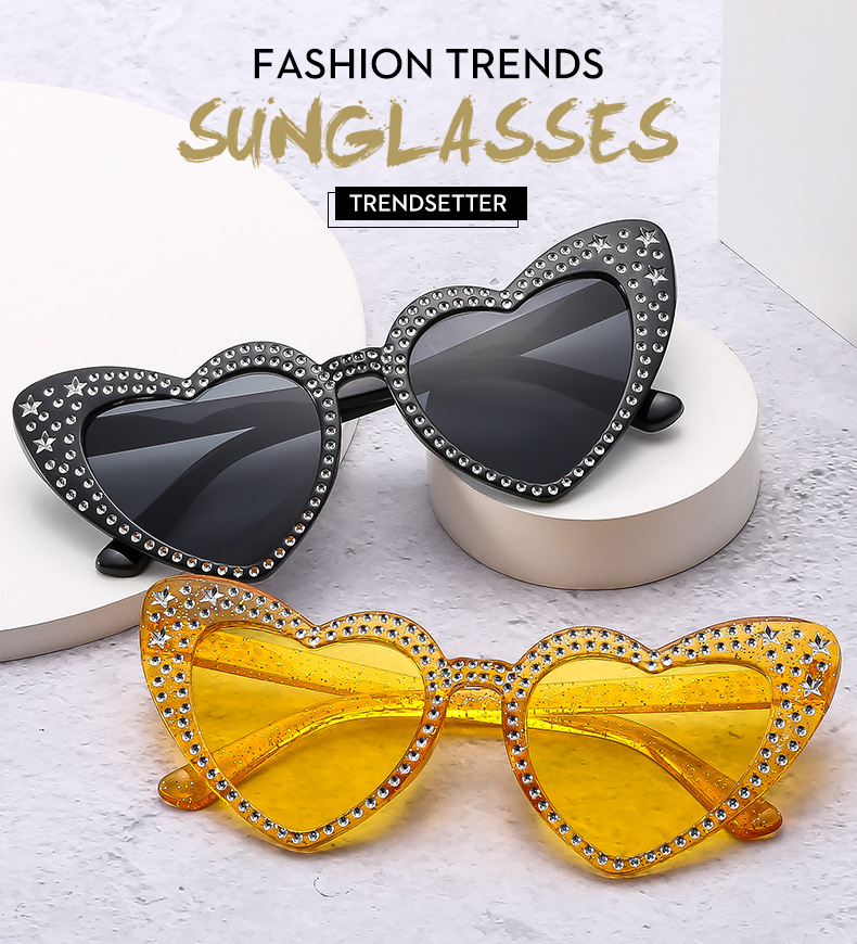 유럽과 미국의 새로운 다이아몬드 하트 패션 사랑 선글라스 숙녀 뜨거운 소녀 맞춤형 하트 모양의 트렌드 국경 선글라스스토어 가기