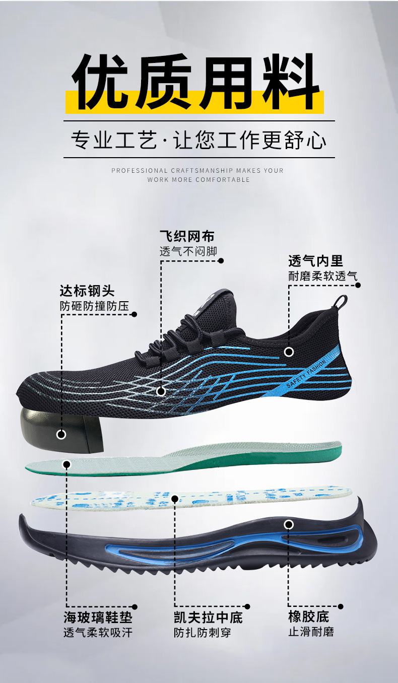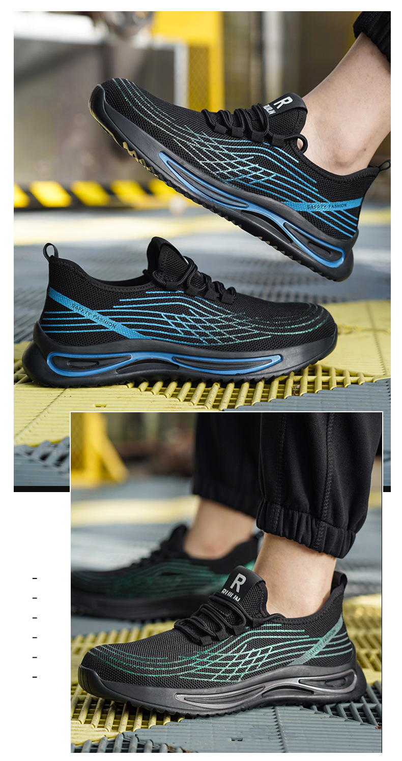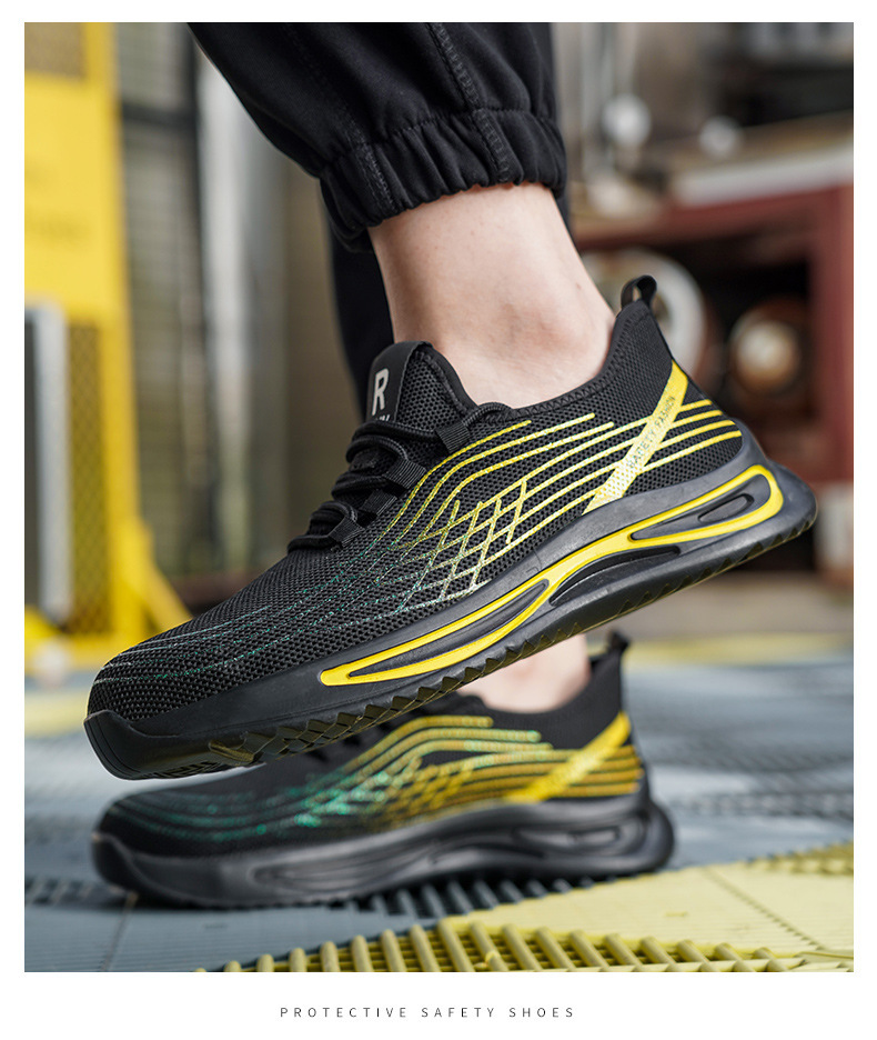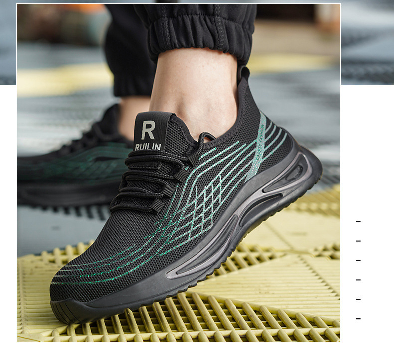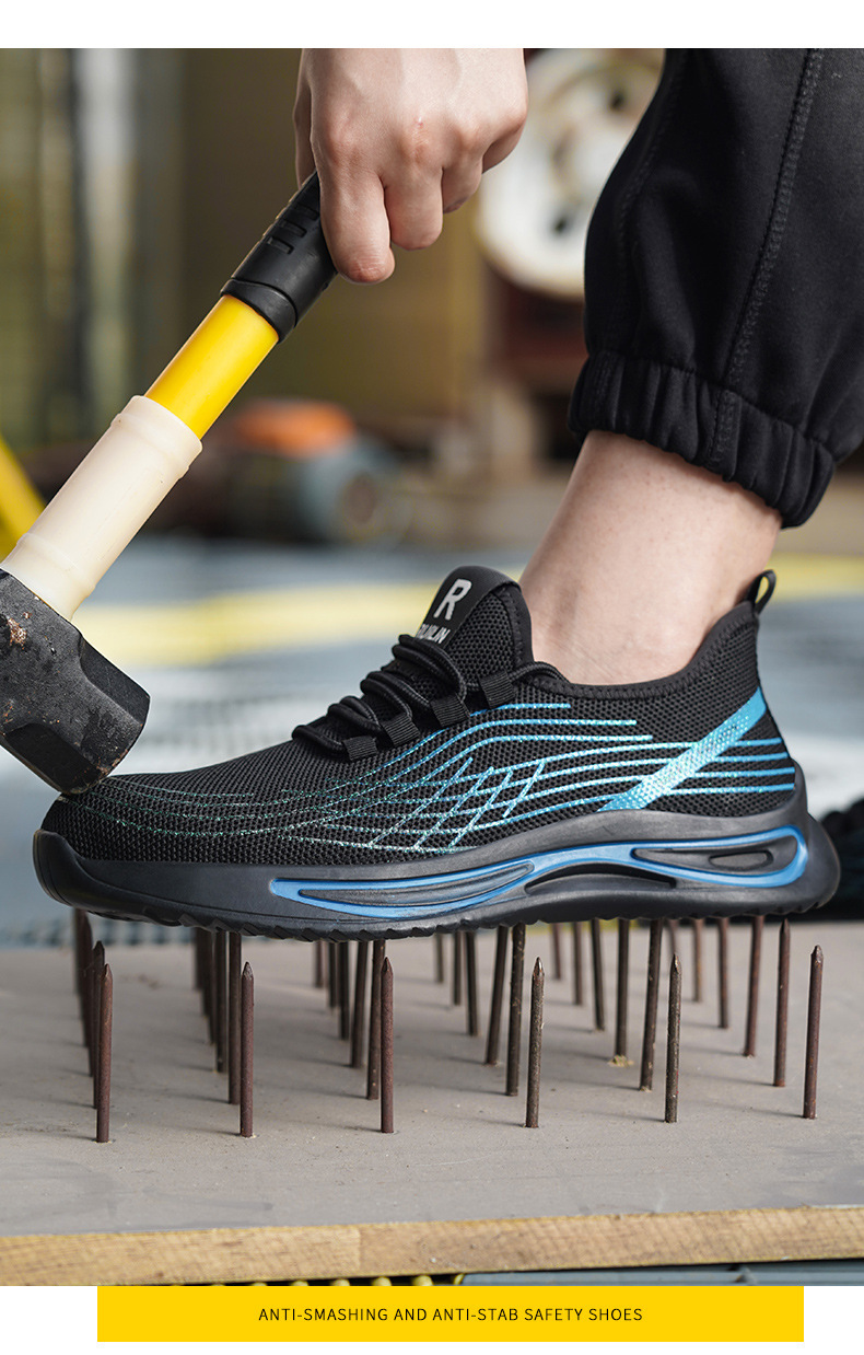 가볍고 통기성 좋은 미끄럼 방지 남성용 안전화, 스틸토, 패셔너블한 스포츠 스타일 작업화, 통기성 캐주얼 보호화 도매스토어 가기