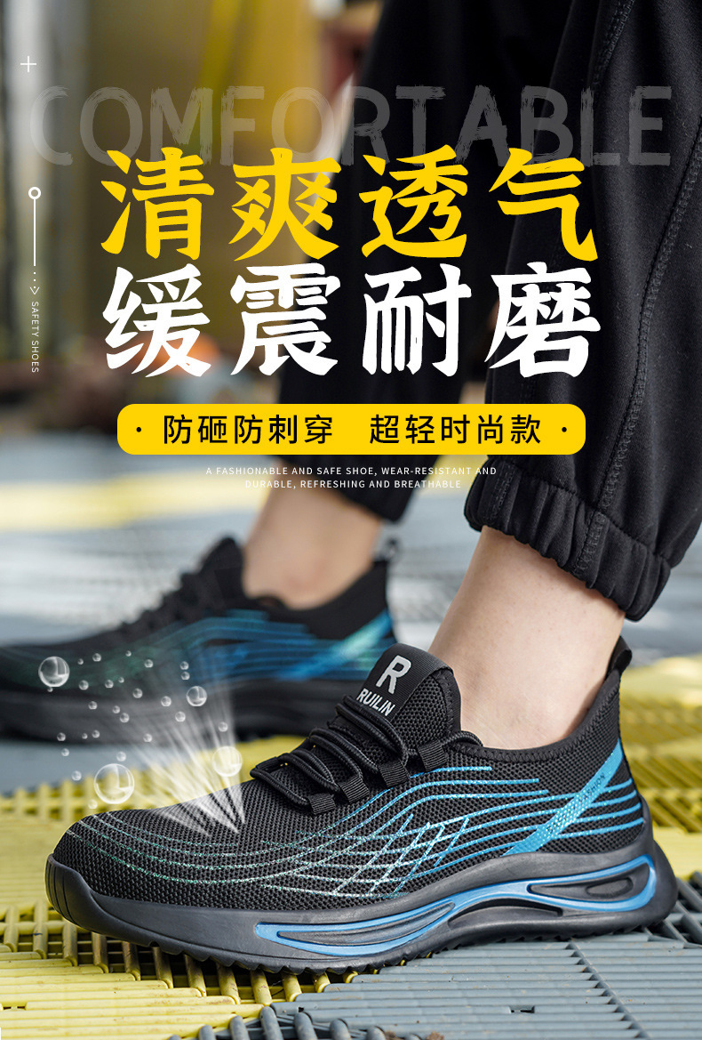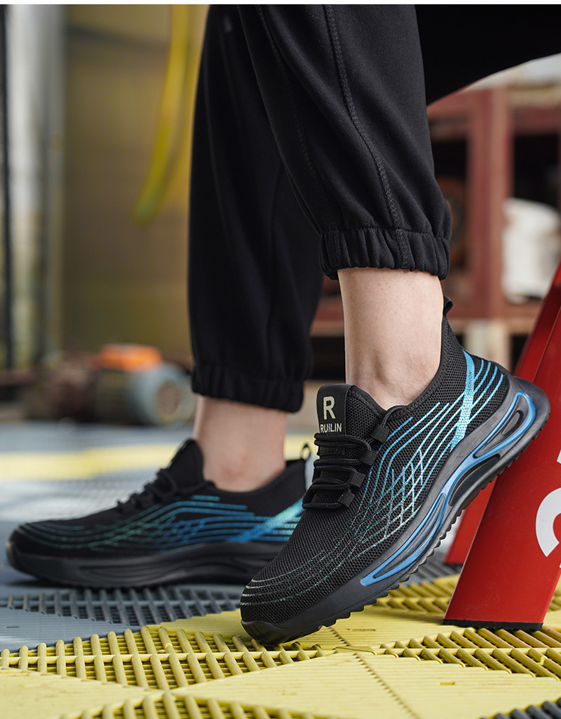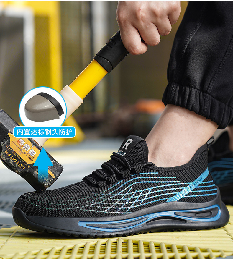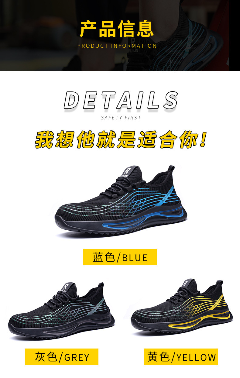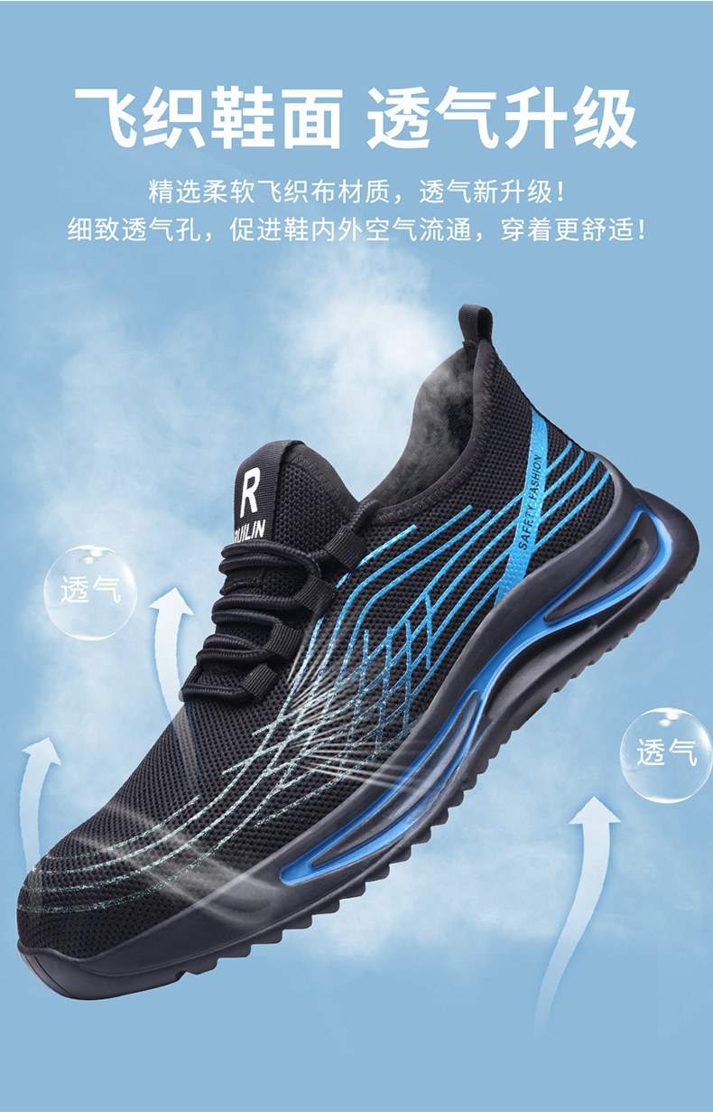 가볍고 통기성 좋은 미끄럼 방지 남성용 안전화, 스틸토, 패셔너블한 스포츠 스타일 작업화, 통기성 캐주얼 보호화 도매스토어 가기