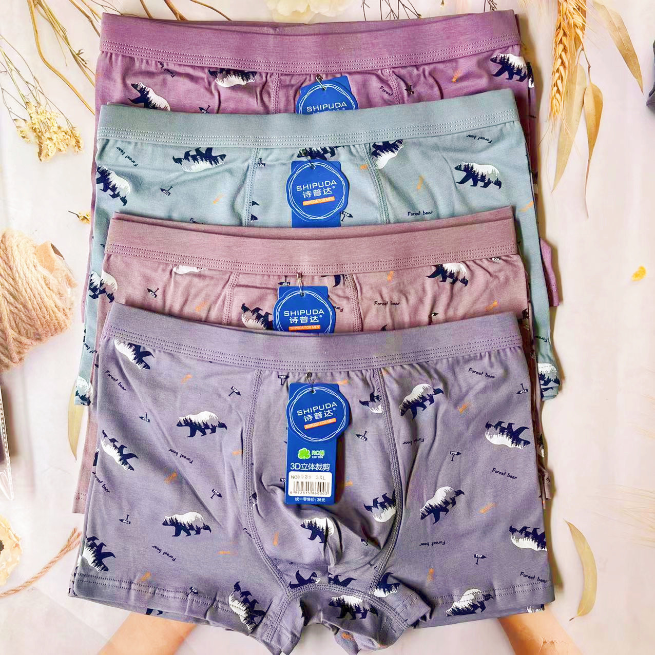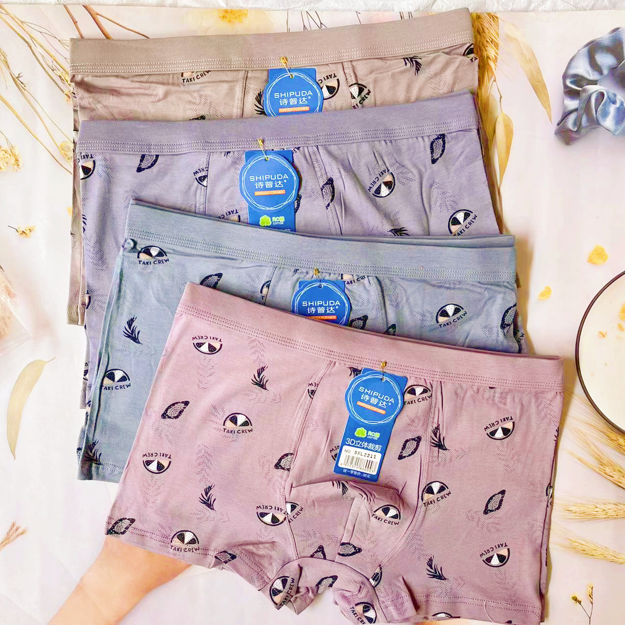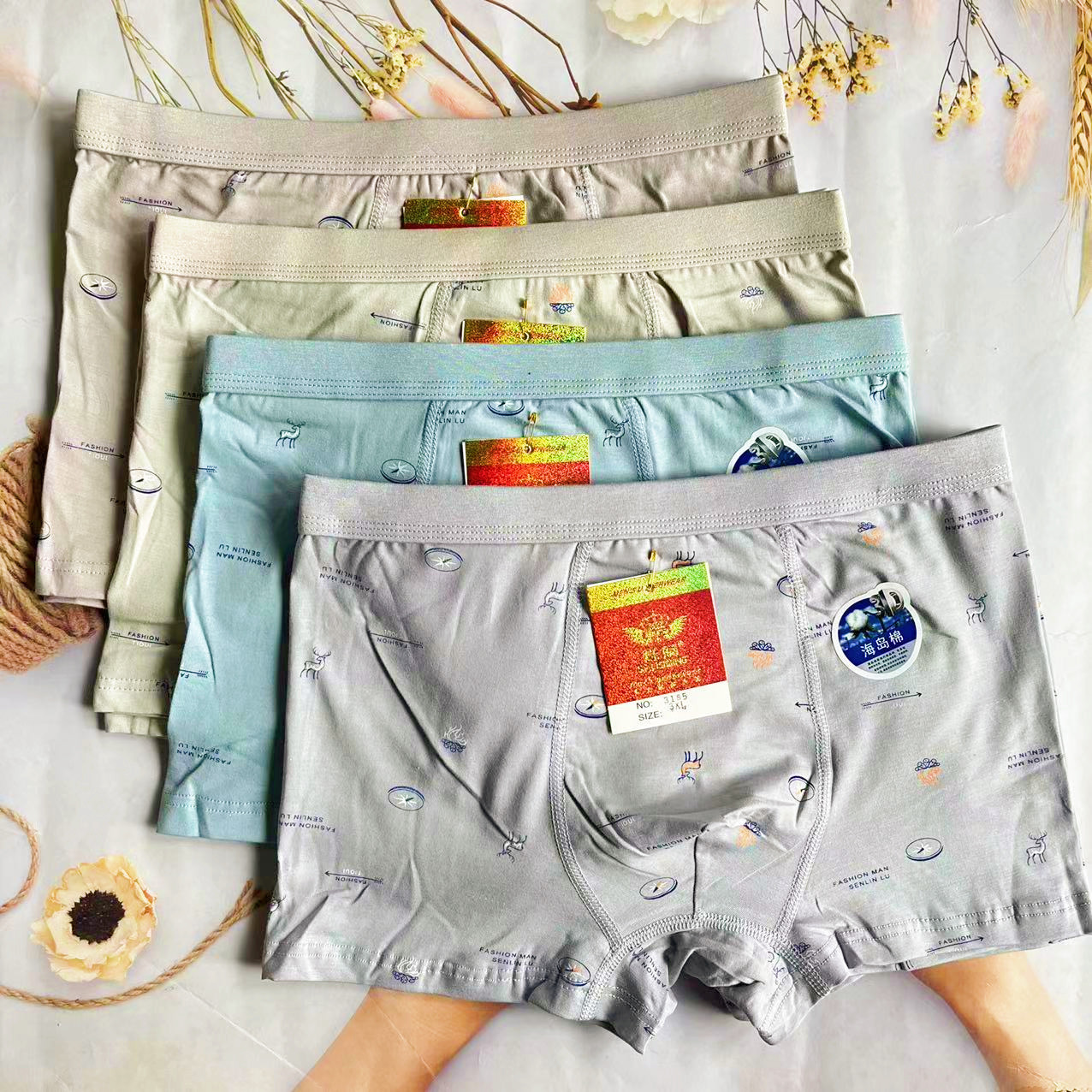중간 색상 빗질 면 인쇄 속옷 바다 섬면 피부 친화적 인 편안한 복서 속옷 전체 꽃 복서 속옷 도매