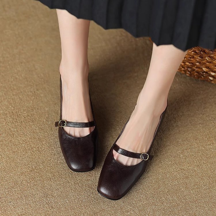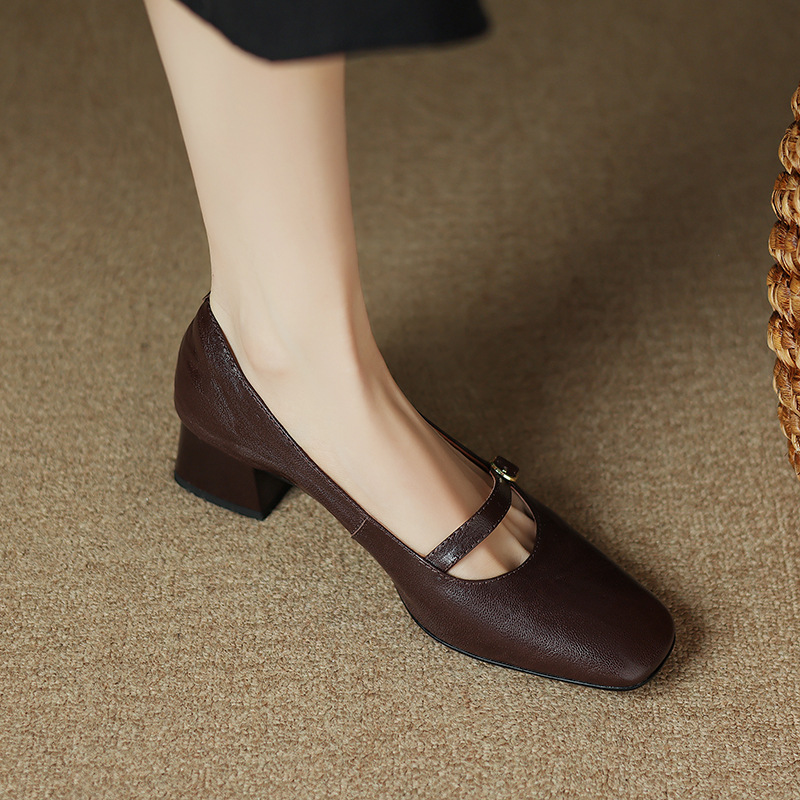 싱글 레이어 신발 2023 봄과 가을 새로운 프랑스 스타일 메리 제인 신발 레트로 두꺼운 굽 신발 스퀘어 토 하이힐이있는 여성 신발스토어 가기