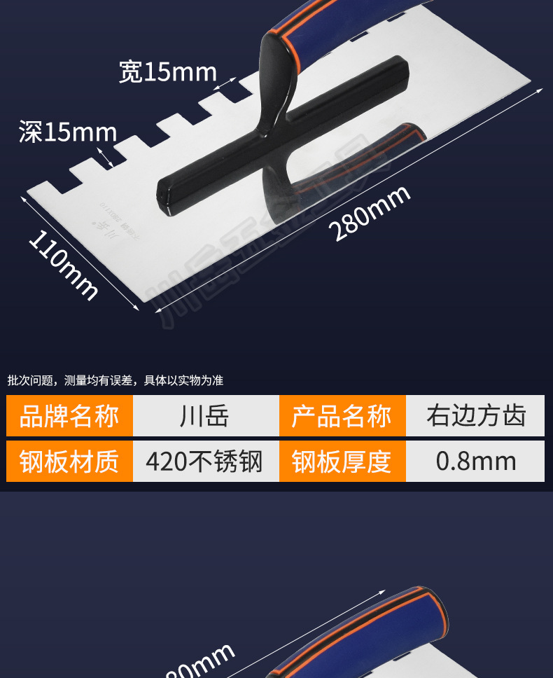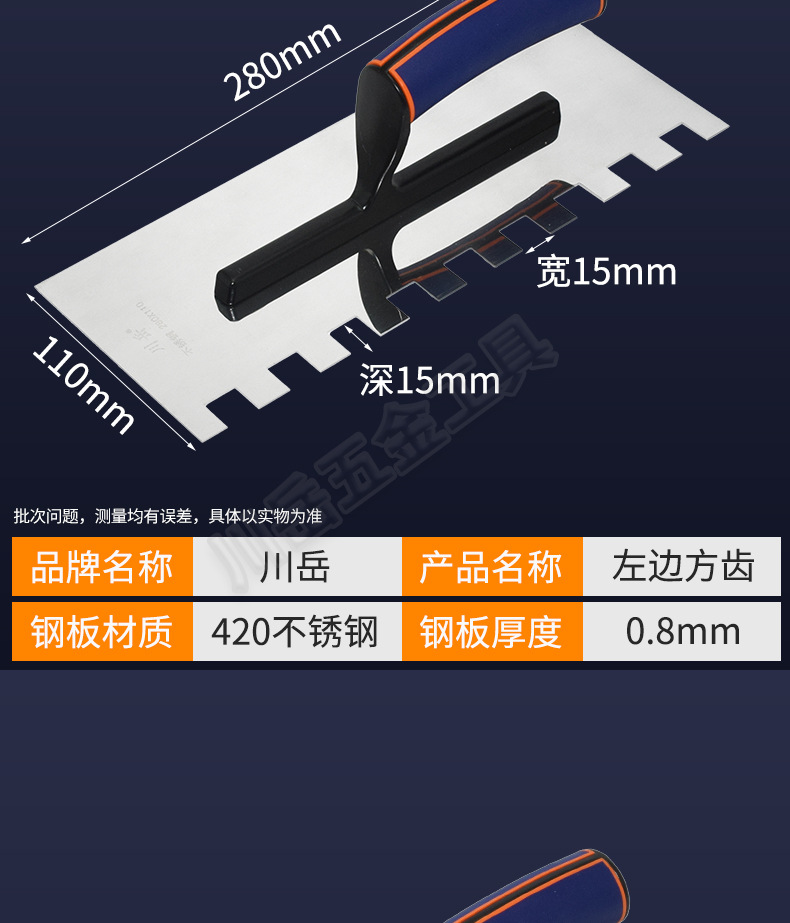 Chuanyue 정사각형 치아 타일 톱니 모양의 흙손 치아 석고 칼 플랫 애쉬 배치 애쉬 키 석공 가게 타일 흙손스토어 가기