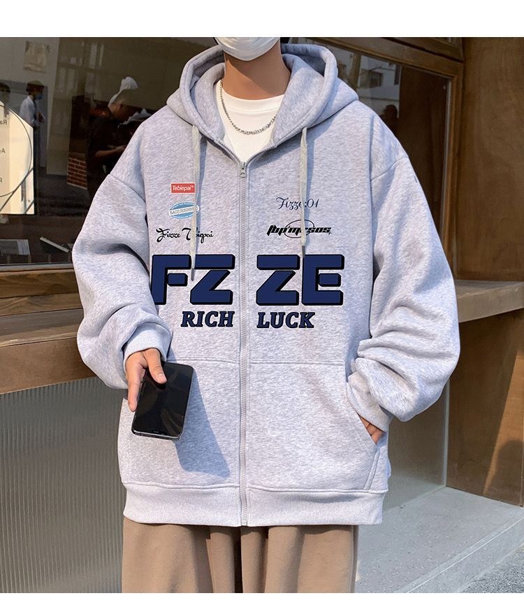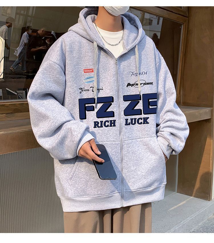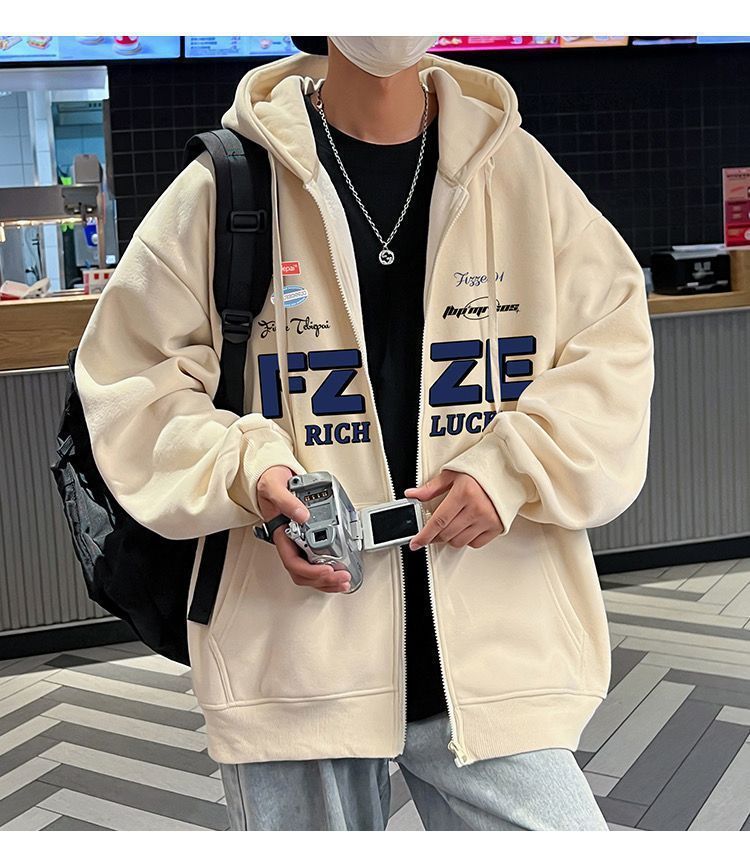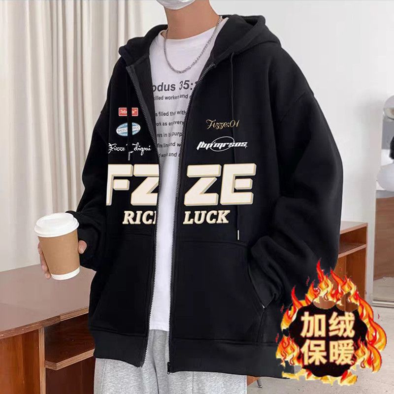 아메리칸 기모 후드 스웨터 남자의 가을 패션 브랜드 재킷 커플 특대 두꺼운 카디건 재킷 학생스토어 가기