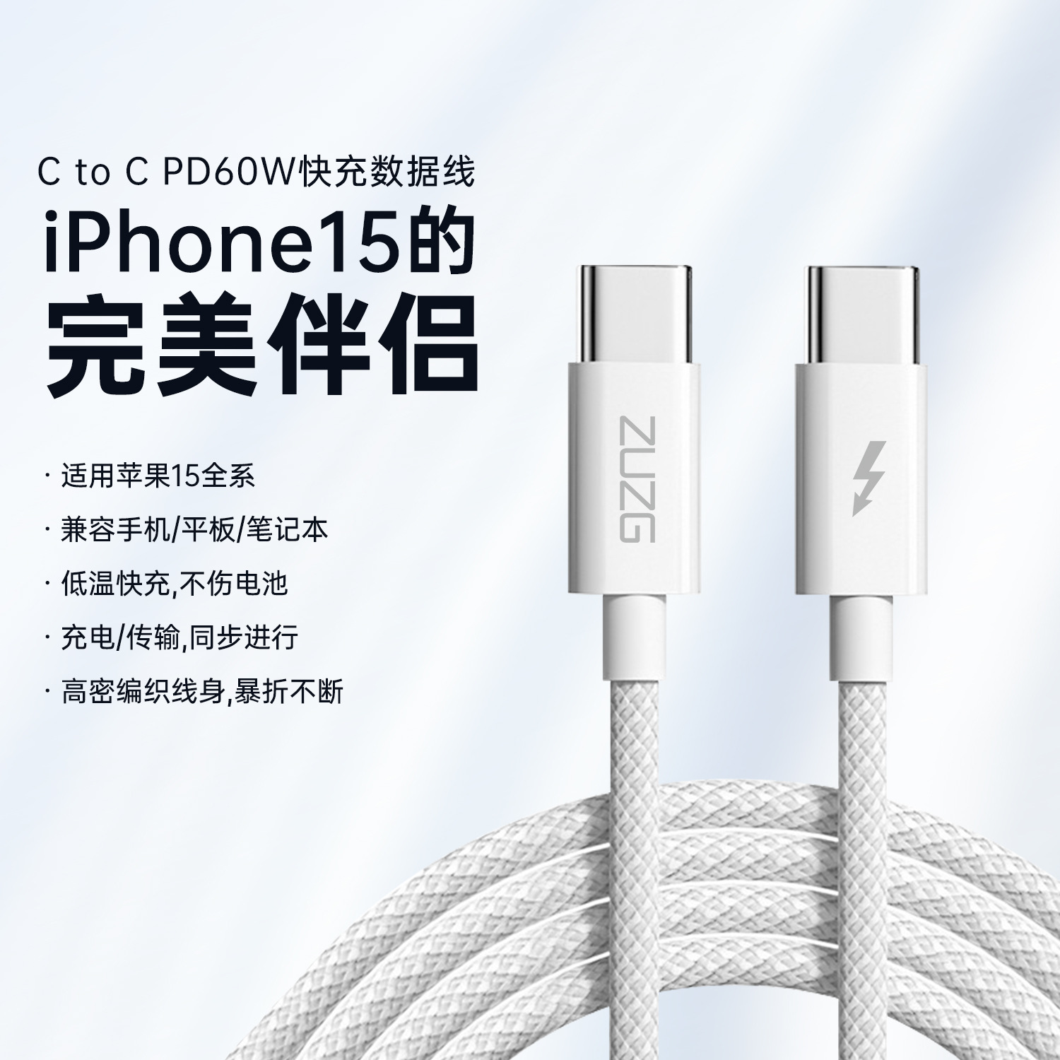 USB 사과 15 데이터 케이블 이중 유형-c 빠른 충전 pd 꼰 라인 iPhone15 완벽하게 호환되는 충전 라인에 적합스토어 가기