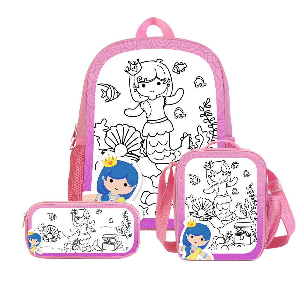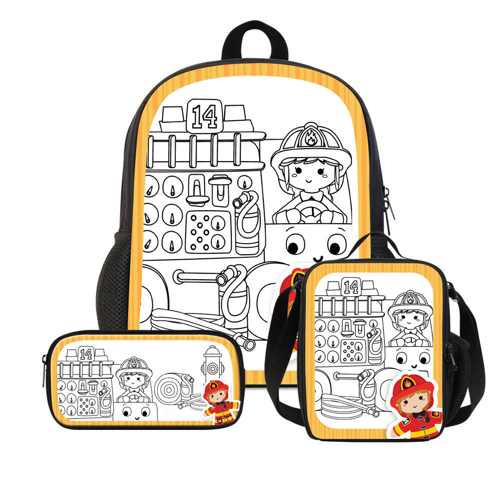 儿童益智填色消防员Diy涂鸦包创意可画画涂色幼儿园书包笔袋餐包