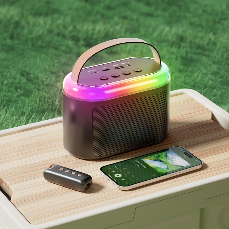 Q2 무선 블루투스 스피커 듀얼 마이크 K 노래 사운드 마이크 데스크 램프 올인원 홈 KTV 컬러풀한 분위기 램프스토어 가기