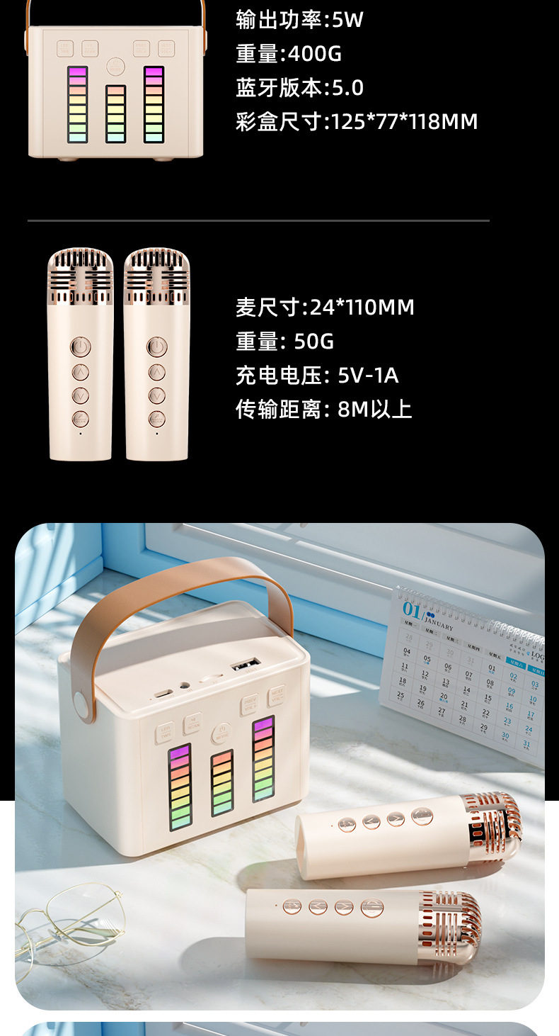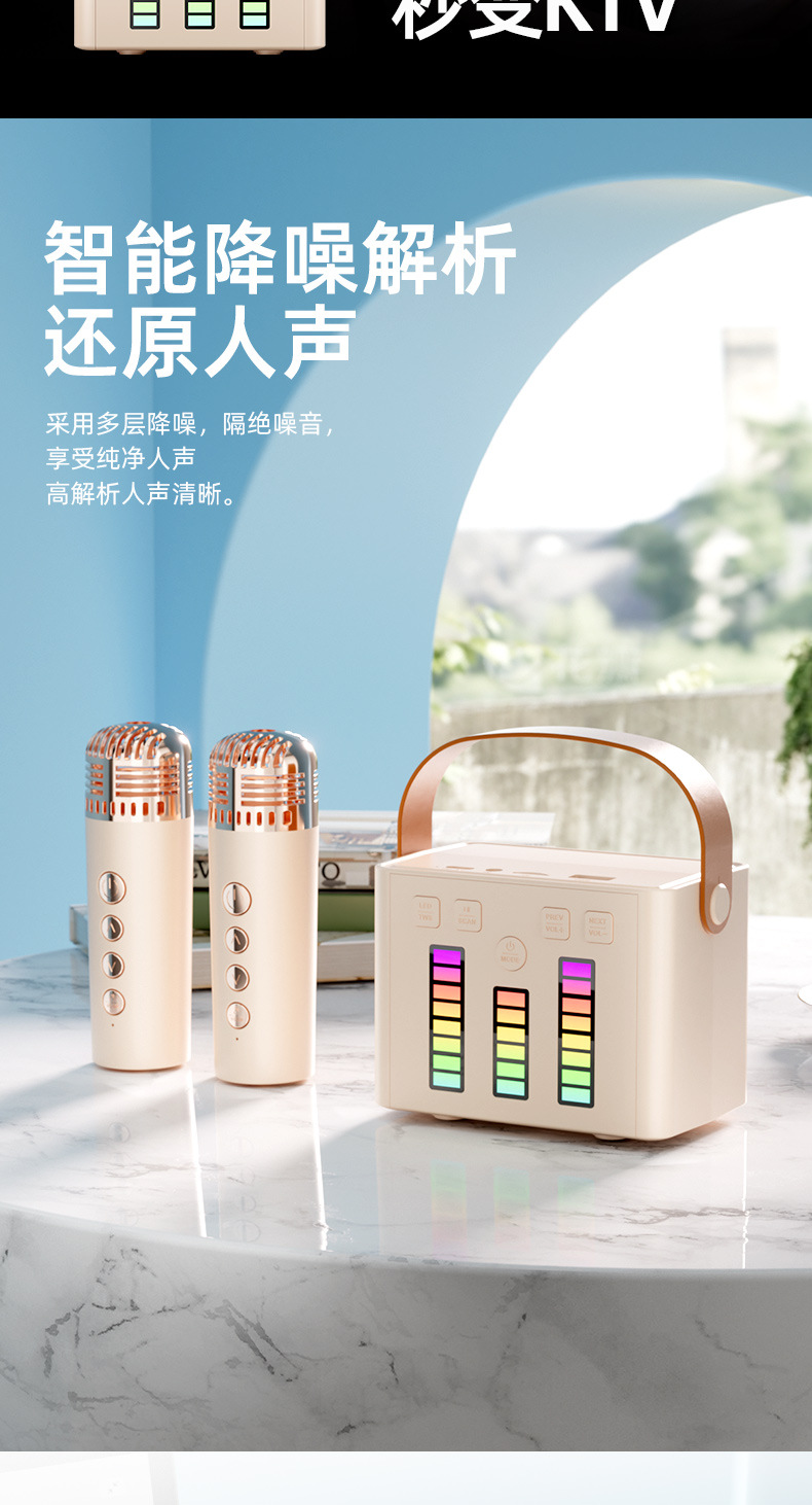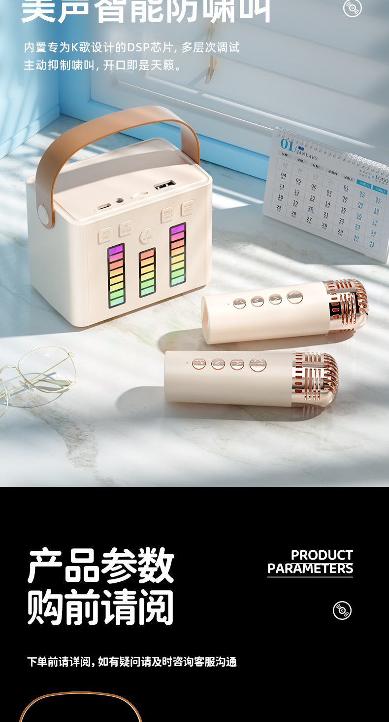 Q2 무선 블루투스 스피커 듀얼 마이크 K 노래 사운드 마이크 데스크 램프 올인원 홈 KTV 컬러풀한 분위기 램프