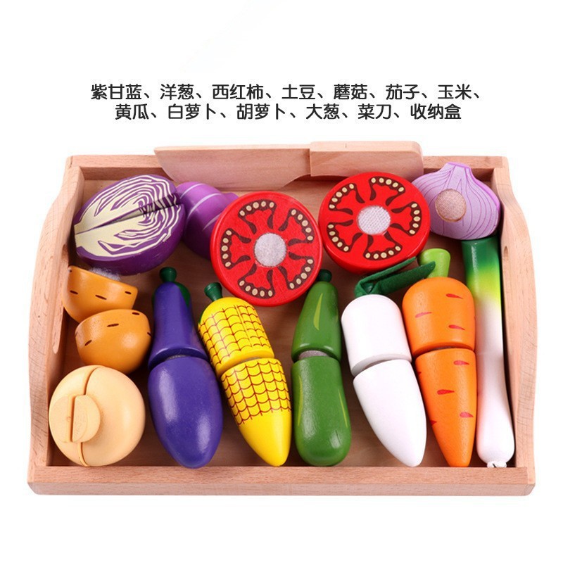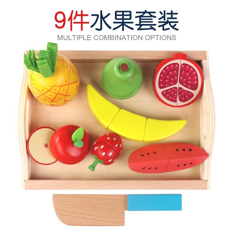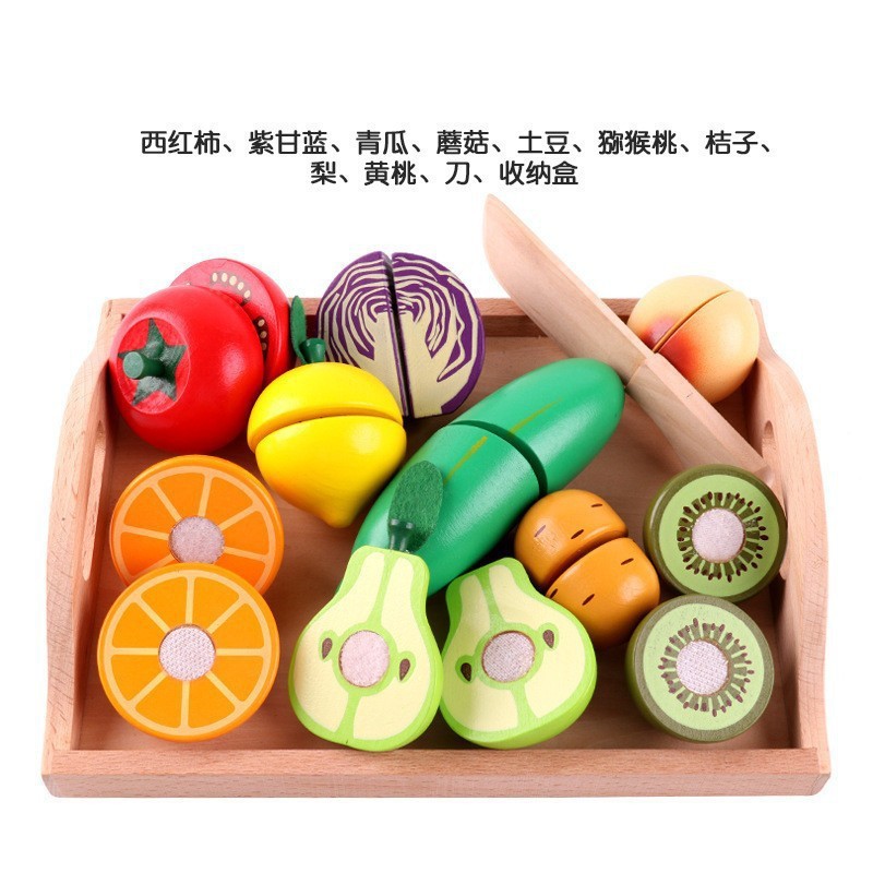 어린이 나무 시뮬레이션 절단 야채와 과일 나무 상자 절단 음악 아기 빌딩 블록 조립 놀이 가정 주방 장난감
