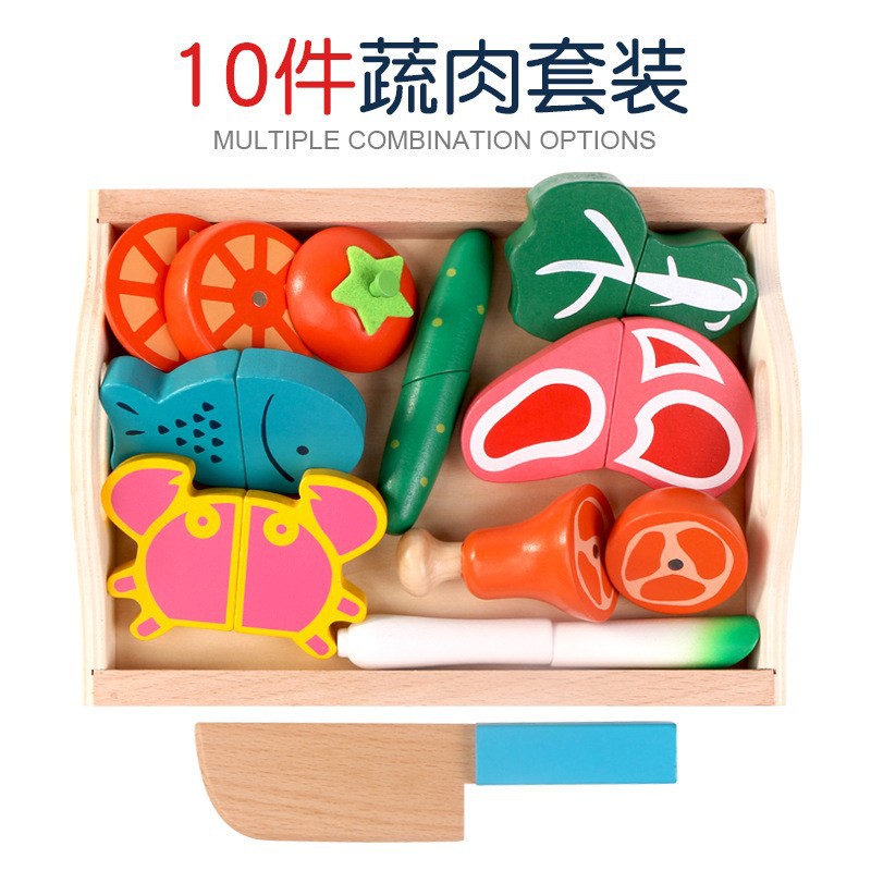 어린이 나무 시뮬레이션 절단 야채와 과일 나무 상자 절단 음악 아기 빌딩 블록 조립 놀이 가정 주방 장난감스토어 가기