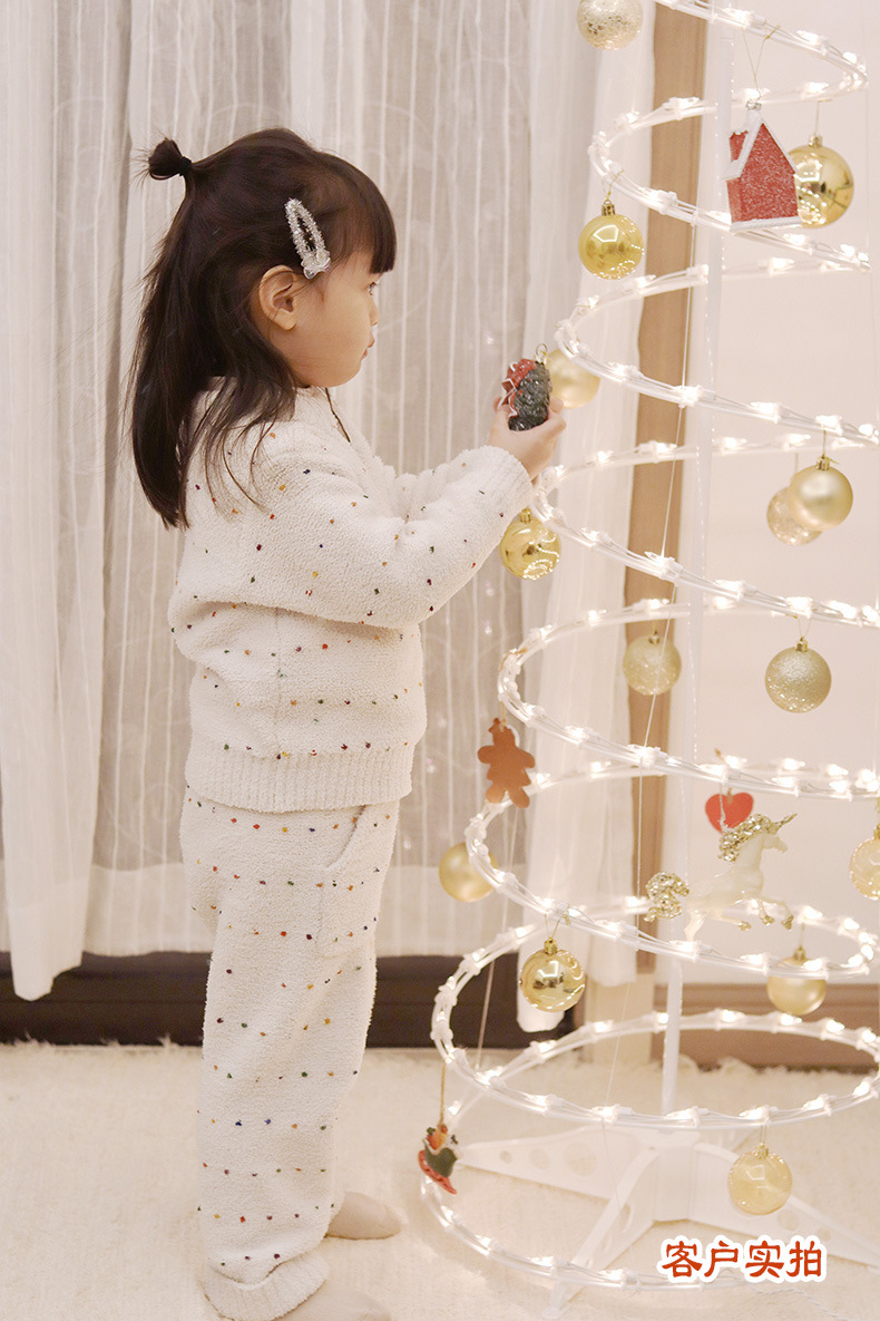 겨울 아이들의 가정 옷 부모-자식 스타일 무지개 콩 반 벨벳 여아 풀오버 잠옷 두꺼운 부드러운 홈 세트스토어 가기