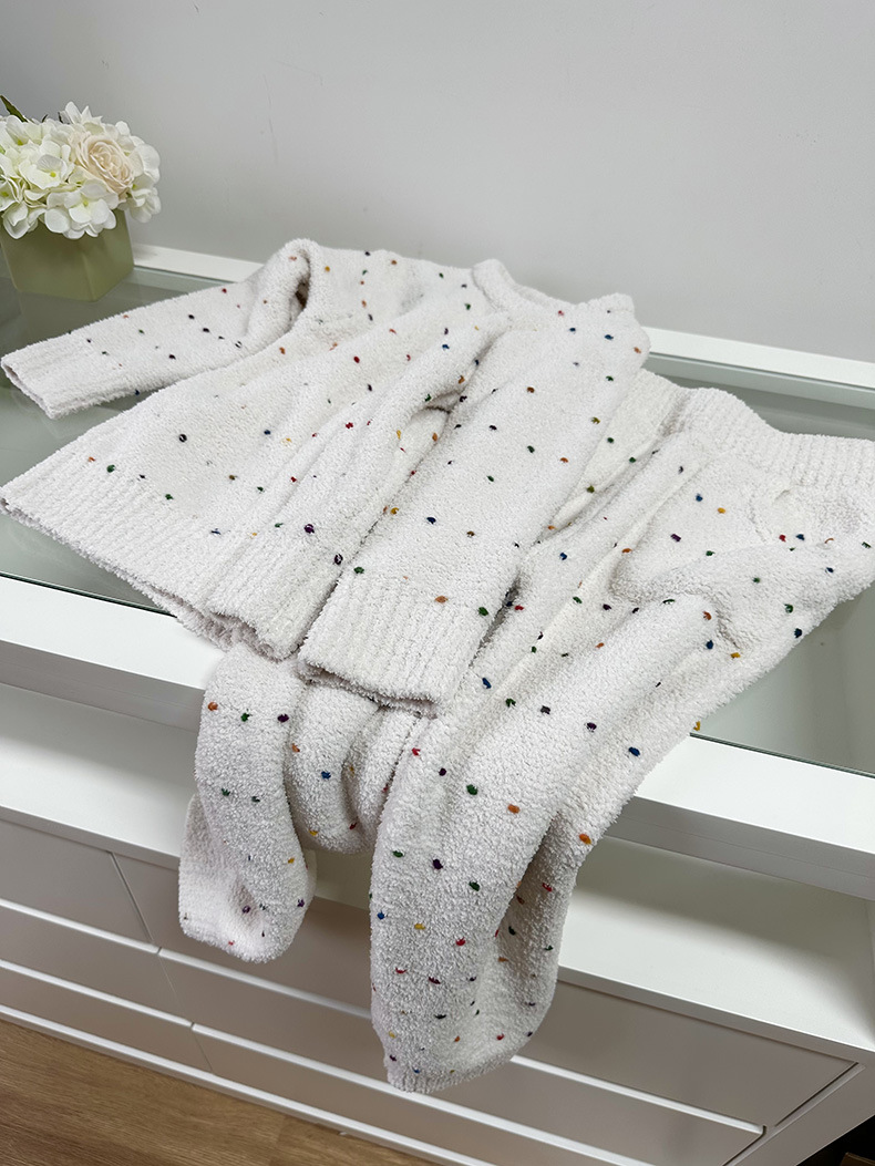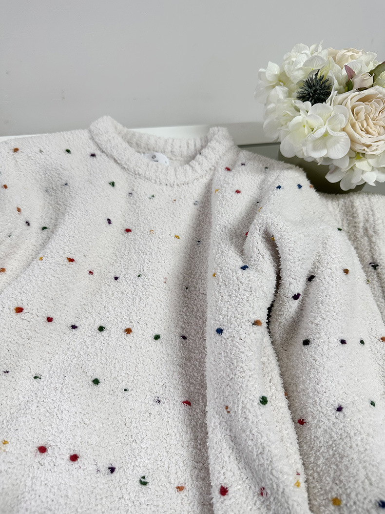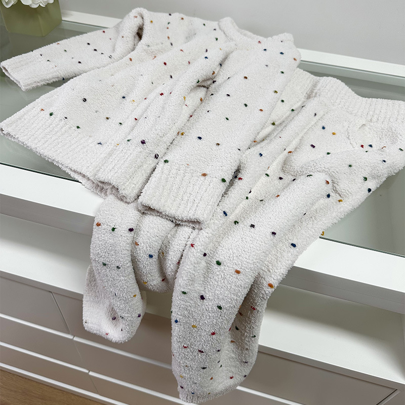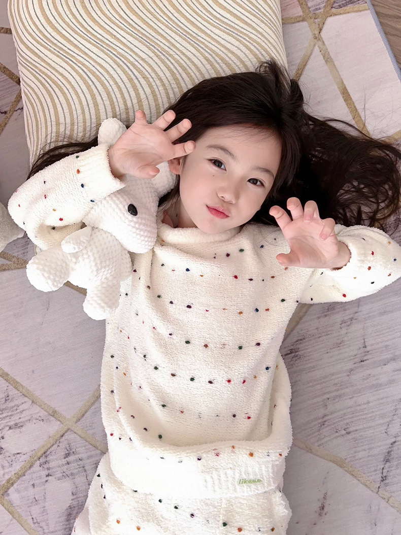 겨울 아이들의 가정 옷 부모-자식 스타일 무지개 콩 반 벨벳 여아 풀오버 잠옷 두꺼운 부드러운 홈 세트